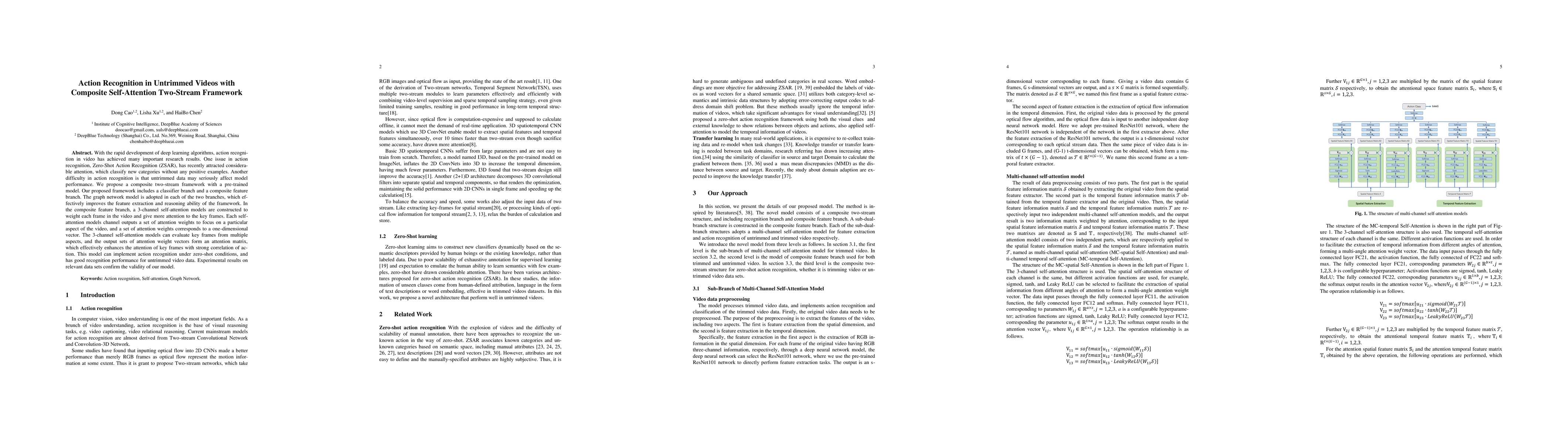 This paper proposes a composite two-stream framework for action recognition in untrimmed videos, utilizing a graph network model and a 3-channel self-attention mechanism to enhance feature extraction and reasoning. The model effectively handles zero-shot action recognition and demonstrates strong performance on untrimmed video data.