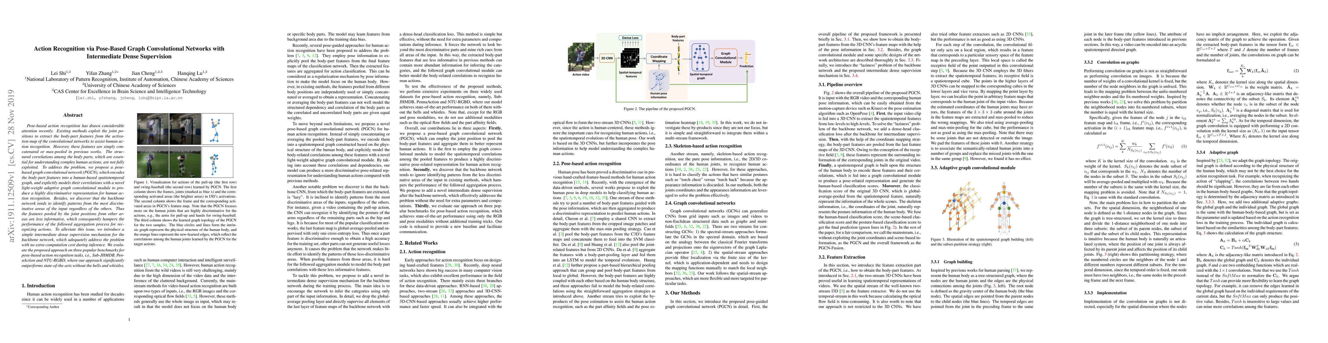 This paper proposes a pose-based graph convolutional network (PGCN) to enhance action recognition by encoding body-part features into a spatiotemporal graph and modeling their correlations. It also introduces an intermediate dense supervision mechanism to improve feature representation, leading to superior performance on multiple benchmarks.