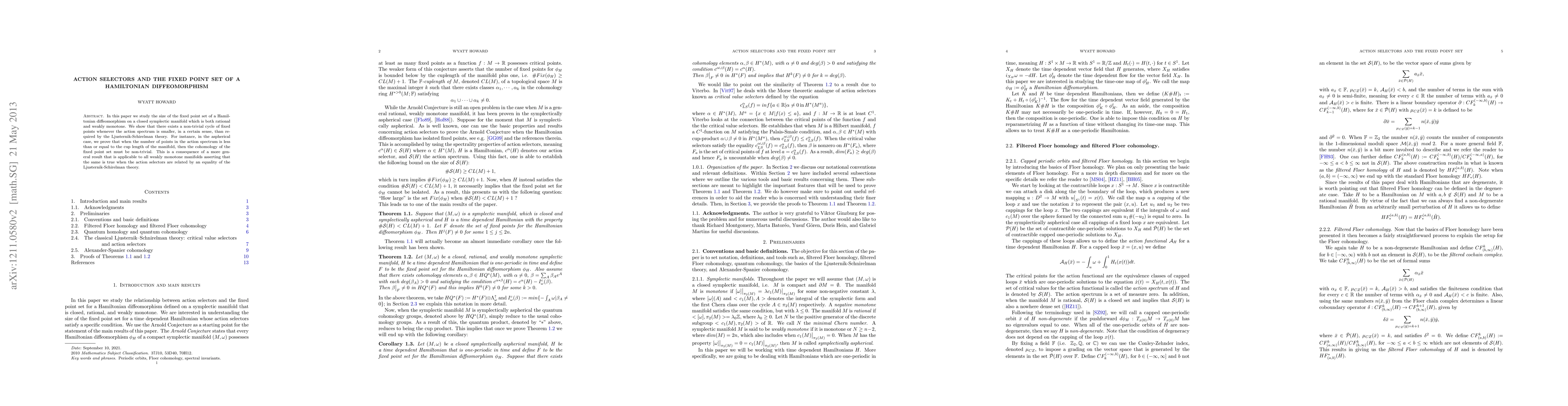 In this paper we study the size of the fixed point set of a Hamiltonian diffeomorphism on a closed symplectic manifold which is both rational and weakly monotone. We show that there exists a non-trivial cycle of fixed points whenever the action spectrum is smaller, in a certain sense, than required by the Ljusternik-Schirelman theory. For instance, in the aspherical case, we prove that when the number of points in the action spectrum is less than or equal to the cup length of the manifold, then the cohomology of the fixed point set must be non-trivial. This is a consequence of a more general result that is applicable to all weakly monotone manifolds asserting that the same is true when the action selectors are related by an equality of the Ljusternik-Schirelman theory.