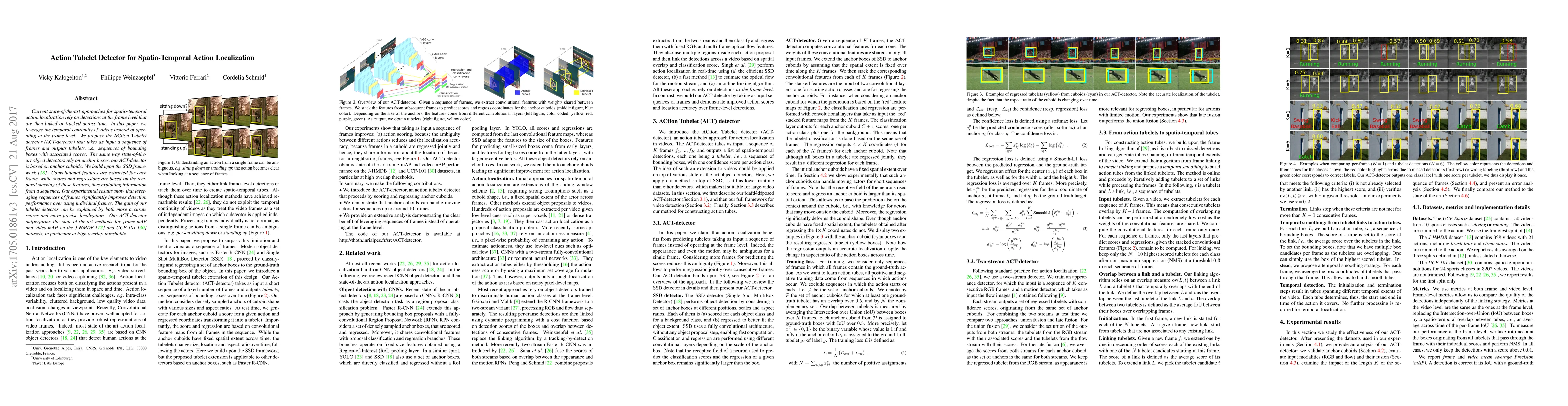 This paper proposes the ACT-detector, a novel action tubelet detector that leverages temporal sequences of frames instead of individual frames for spatio-temporal action localization, achieving better performance by exploiting temporal continuity and outperforming state-of-the-art methods on J-HMDB and UCF-101 datasets.