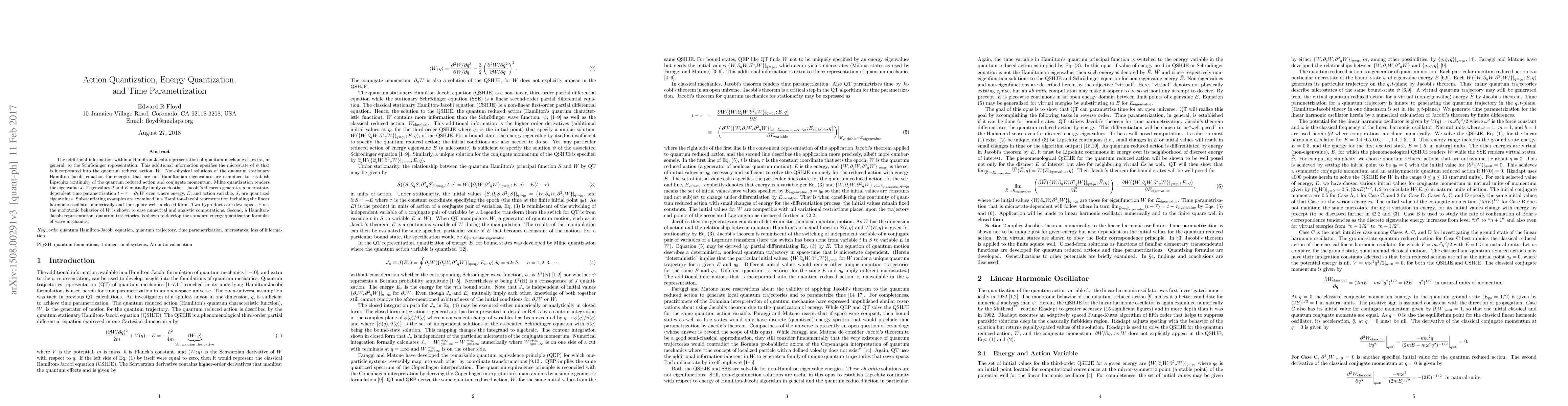 The additional information within a Hamilton-Jacobi representation of quantum mechanics is extra, in general, to the Schr\"odinger representation. This additional information specifies the microstate of $\psi$ that is incorporated into the quantum reduced action, $W$. Non-physical solutions of the quantum stationary Hamilton-Jacobi equation for energies that are not Hamiltonian eigenvalues are examined to establish Lipschitz continuity of the quantum reduced action and conjugate momentum. Milne quantization renders the eigenvalue $J$. Eigenvalues $J$ and $E$ mutually imply each other. Jacobi's theorem generates a microstate-dependent time parametrization $t-\tau=\partial_E W$ even where energy, $E$, and action variable, $J$, are quantized eigenvalues. Substantiating examples are examined in a Hamilton-Jacobi representation including the linear harmonic oscillator numerically and the square well in closed form. Two byproducts are developed. First, the monotonic behavior of $W$ is shown to ease numerical and analytic computations. Second, a Hamilton-Jacobi representation, quantum trajectories, is shown to develop the standard energy quantization formulas of wave mechanics..