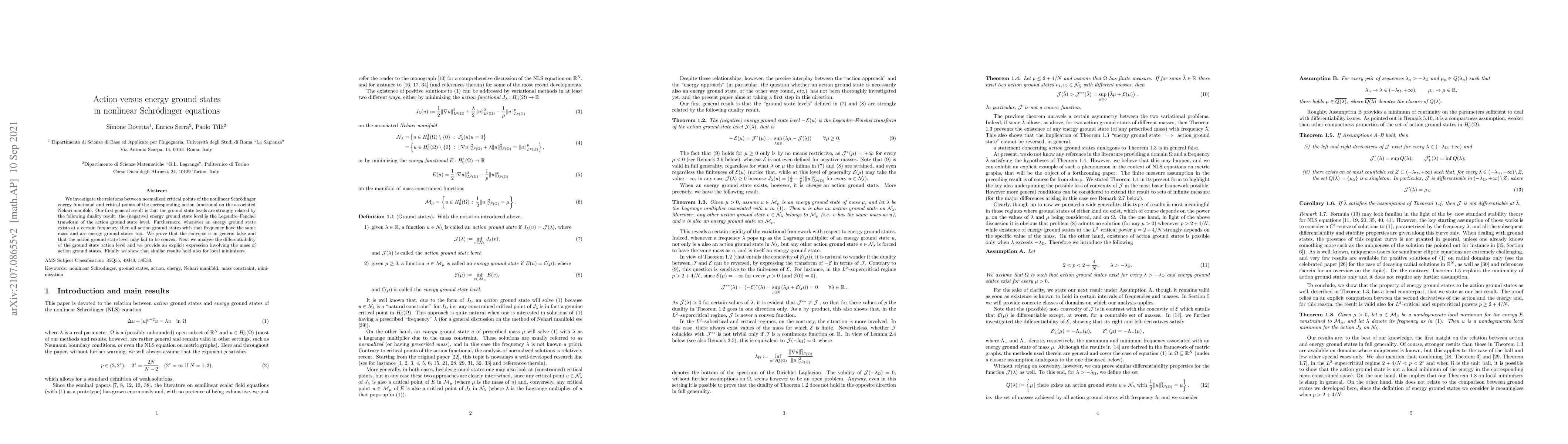 This paper explores the connections between normalized critical points of the nonlinear Schrödinger energy functional and those of the corresponding action functional on the Nehari manifold. It establishes a duality where the energy ground state level is the Legendre-Fenchel transform of the action ground state level, and shows that energy ground states and action ground states with the same frequency share mass.