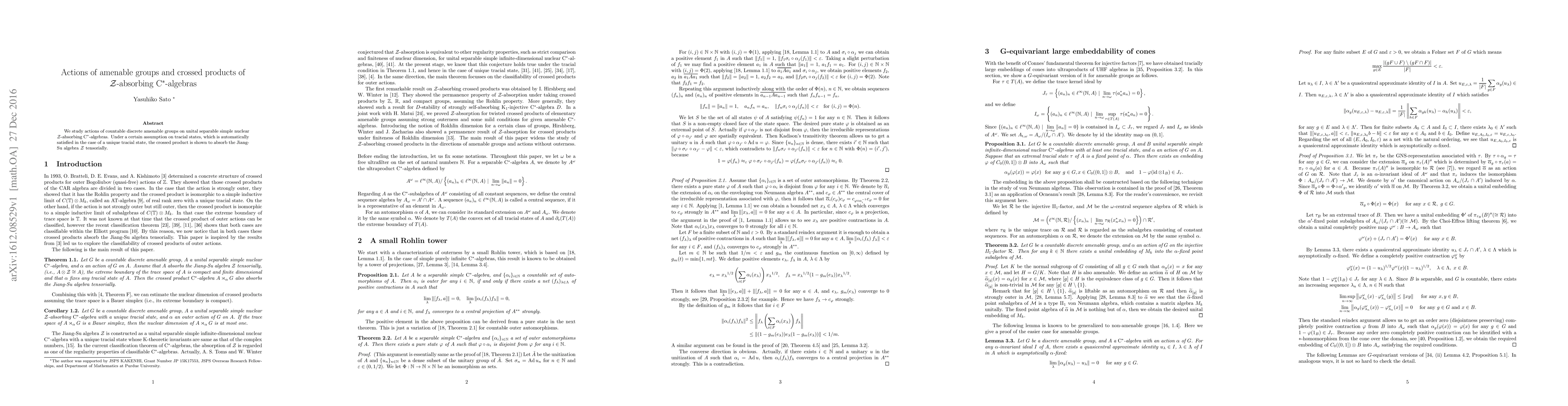 This paper investigates the actions of countable discrete amenable groups on simple nuclear Z-absorbing C*-algebras, proving that under specific tracial state assumptions, the crossed product absorbs the Jiang-Su algebra Z tensorially, especially when there is a unique tracial state.