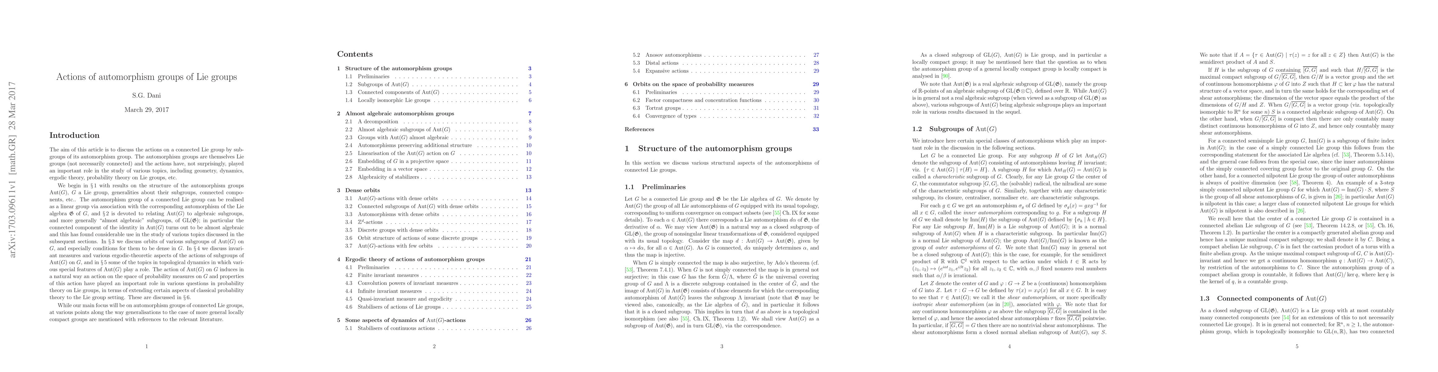 This paper explores the actions of automorphism groups on Lie groups, reviewing their structure and examining actions with dense orbits, invariant measures, and implications in ergodic theory, topological dynamics, and probability theory on Lie groups.
