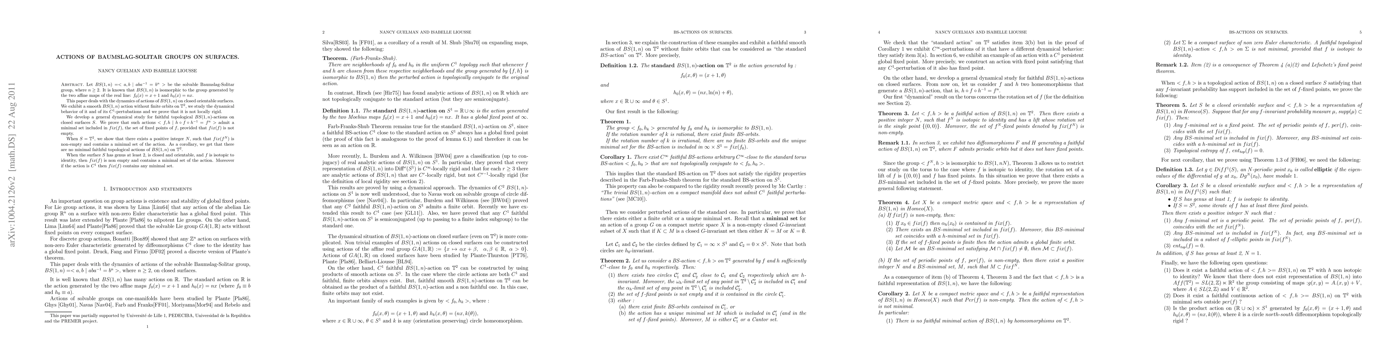 Researchers studied the actions of Baumslag-Solitar groups on closed orientable surfaces, finding that such actions can exhibit complex dynamics, including the existence or non-existence of minimal sets depending on the surface genus and group properties.