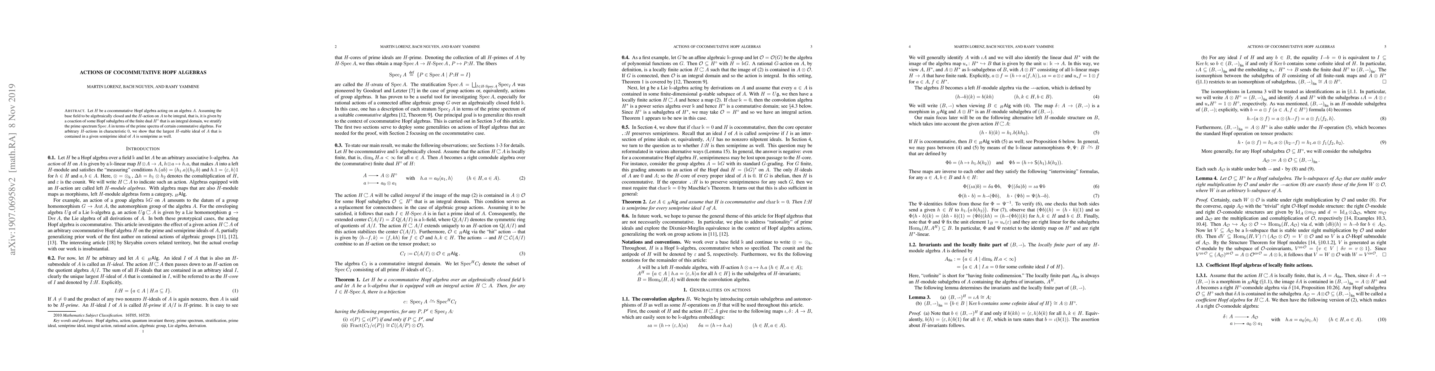 This research paper explores the actions of cocommutative Hopf algebras on algebras, specifically under integral actions with an algebraically closed base field. It stratifies the prime spectrum of the algebra using prime spectra of commutative algebras. The study further ensures that the largest H-stable ideal within a semiprime ideal remains semiprime for arbitrary H-actions in characteristic 0.