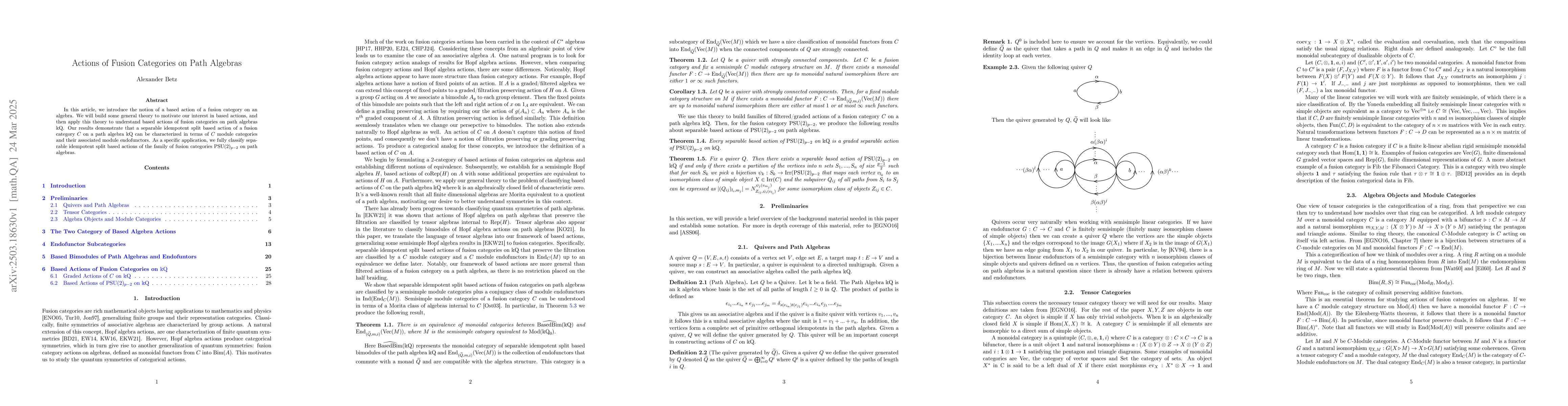 The research introduces the concept of a based action of a fusion category on path algebras, building a general theory and applying it to understand such actions. It characterizes separable idempotent split based actions of fusion categories on path algebras in terms of module categories and their associated module endofunctors.