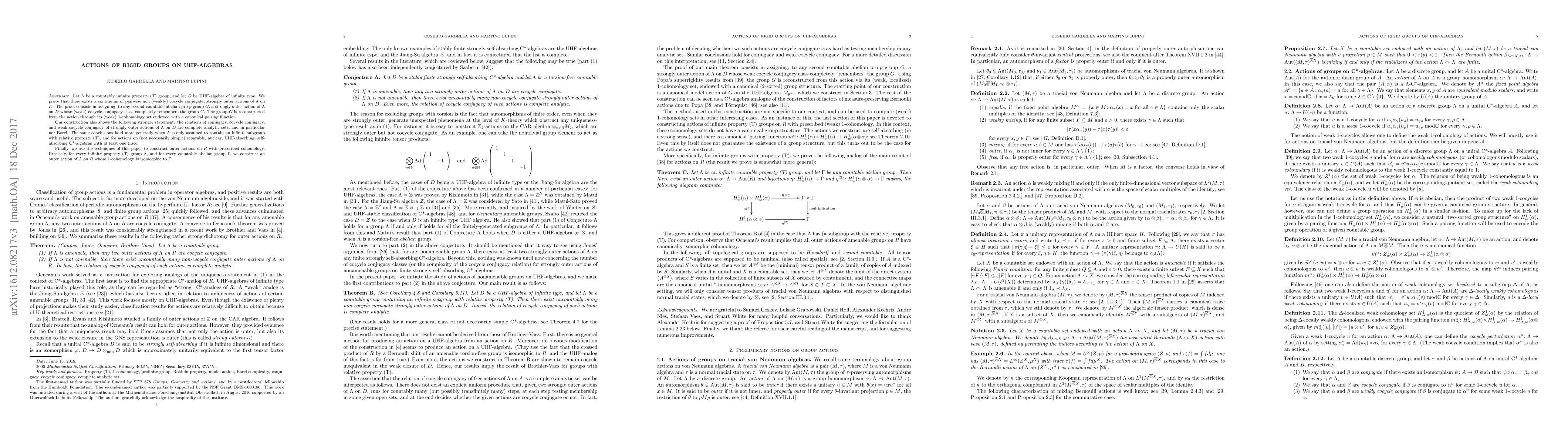 This paper proves that countably infinite property (T) groups $\Lambda$ induce a continuum of strongly outer actions on UHF-algebras $D$, each uniquely determined by a second countable abelian pro-$p$ group. It also demonstrates that the relations of conjugacy, cocycle conjugacy, and weak cocycle conjugacy for these actions are complete analytic sets, not Borel.
