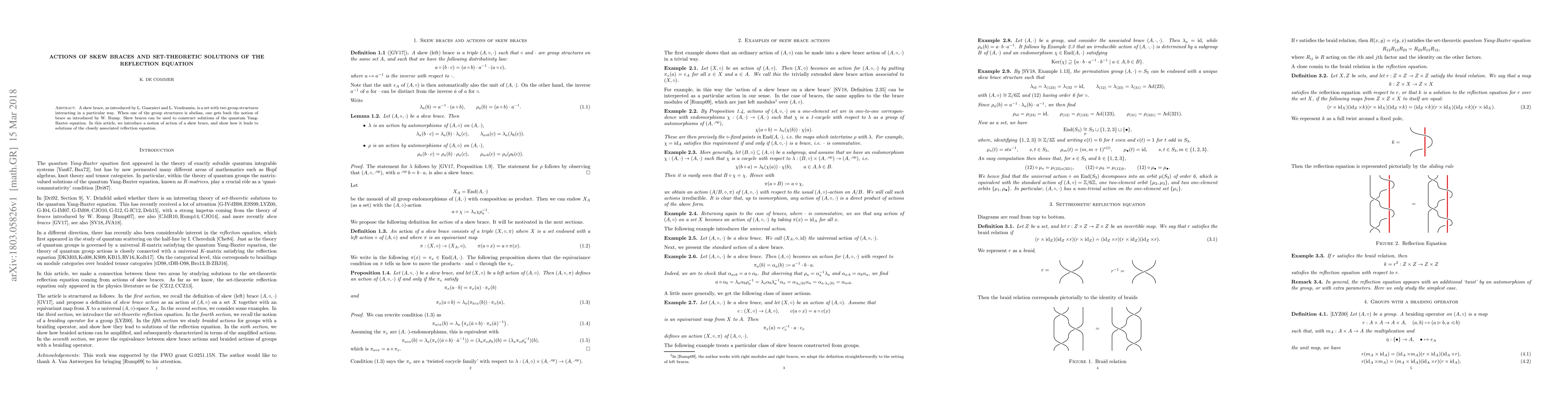 Summary: This paper introduces the concept of skew braces and their actions, demonstrating how these structures can be used to construct solutions for the reflection equation, which is closely related to the quantum Yang-Baxter equation.
