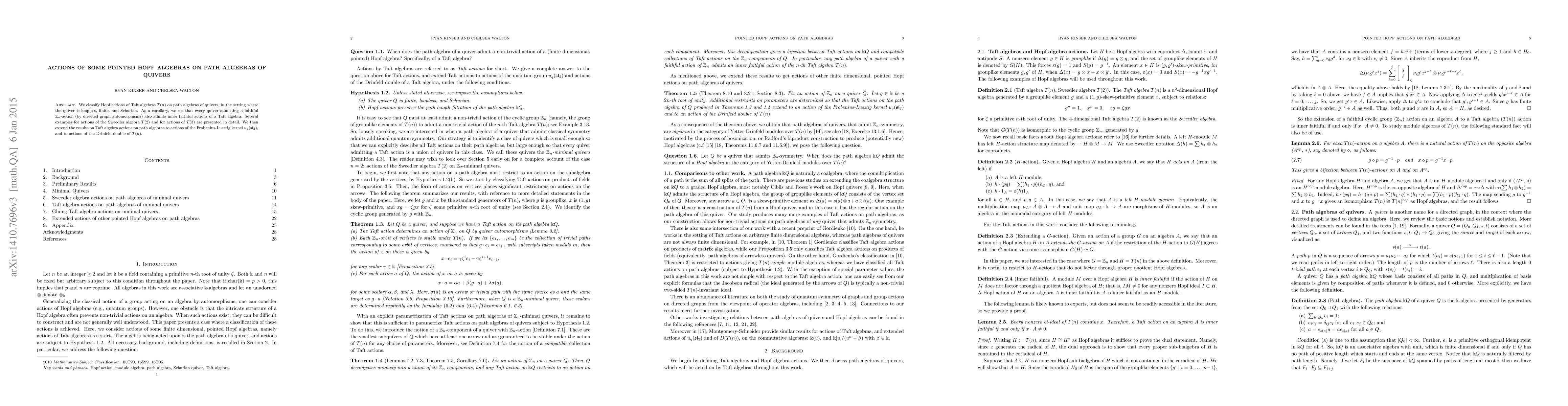 This paper classifies Hopf actions of Taft algebras on path algebras of loopless, finite, and Schurian quivers, demonstrating that such quivers can also support inner faithful actions of Taft algebras. It includes detailed examples of actions by the Sweedler algebra and Taft algebra T(3), and extends the findings to actions by the Frobenius-Lusztig kernel and the Drinfeld double of Taft algebras.