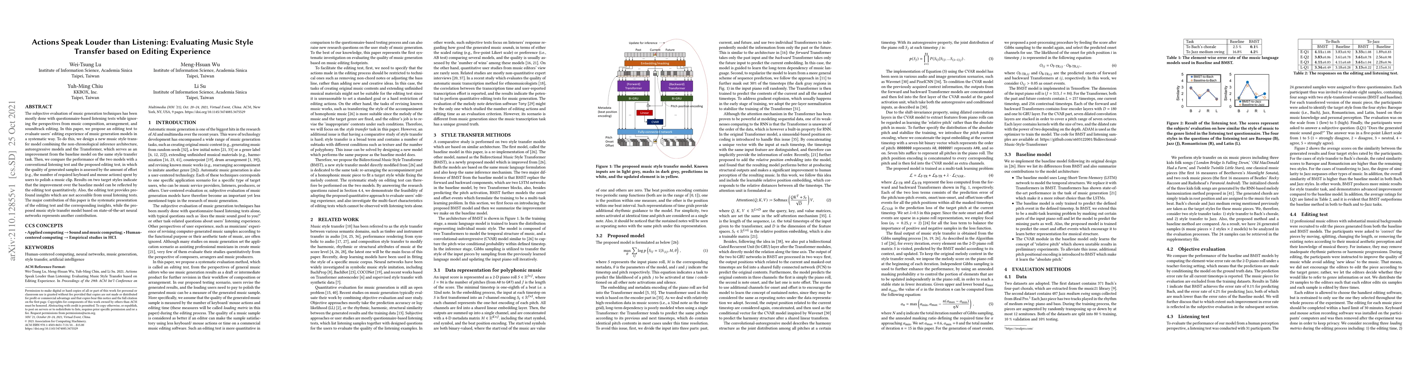 The subjective evaluation of music generation techniques has been mostly done with questionnaire-based listening tests while ignoring the perspectives from music composition, arrangement, and soundtrack editing. In this paper, we propose an editing test to evaluate users' editing experience of music generation models in a systematic way. To do this, we design a new music style transfer model combining the non-chronological inference architecture, autoregressive models and the Transformer, which serves as an improvement from the baseline model on the same style transfer task. Then, we compare the performance of the two models with a conventional listening test and the proposed editing test, in which the quality of generated samples is assessed by the amount of effort (e.g., the number of required keyboard and mouse actions) spent by users to polish a music clip. Results on two target styles indicate that the improvement over the baseline model can be reflected by the editing test quantitatively. Also, the editing test provides profound insights which are not accessible from usual listening tests. The major contribution of this paper is the systematic presentation of the editing test and the corresponding insights, while the proposed music style transfer model based on state-of-the-art neural networks represents another contribution.