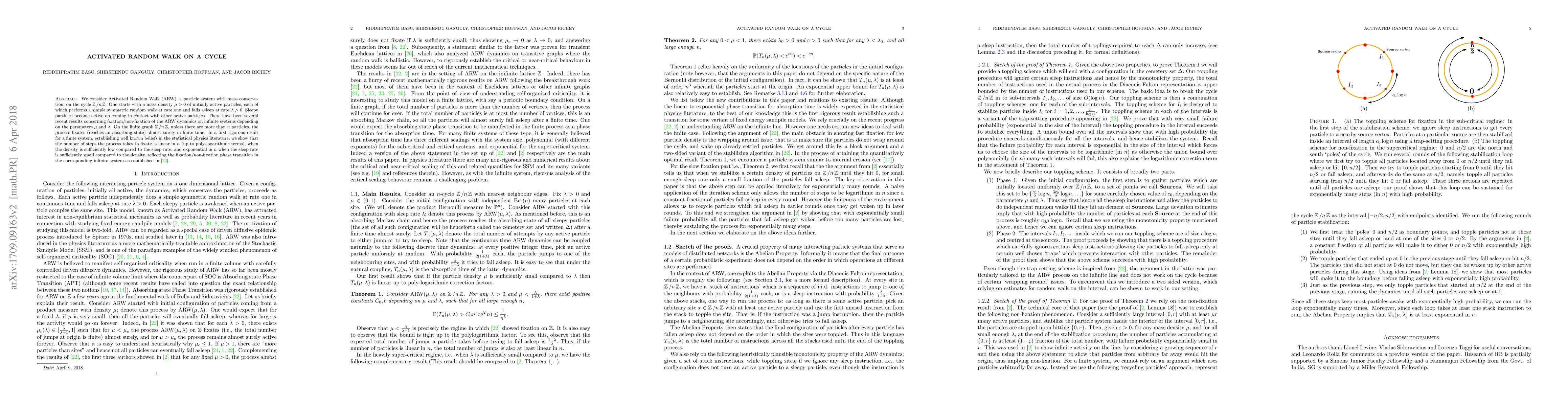 The paper presents a detailed analysis of Activated Random Walk on a cycle, providing a toppling procedure and characterizing the number of steps to fixation based on particle density and sleep rate.