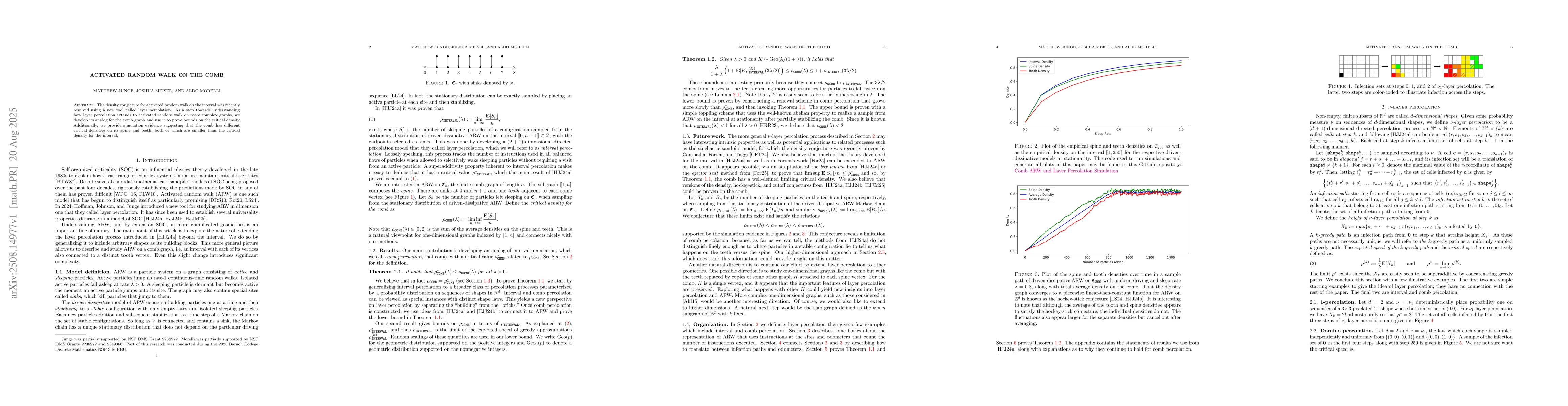 The density conjecture for activated random walk on the interval was recently resolved using a new tool called layer percolation. As a step towards understanding how layer percolation extends to activated random walk on more complex graphs, we develop its analog for the comb graph and use it to prove bounds on the critical density. Additionally, we provide simulation evidence suggesting that the comb has different critical densities on its spine and teeth, both of which are smaller than the critical density for the interval.