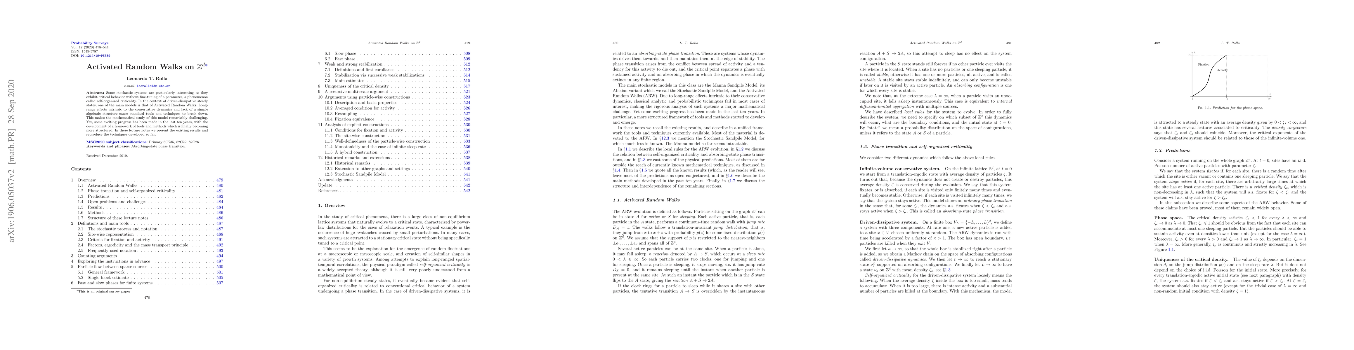 The paper presents a mathematical study of Activated Random Walks (ARW) on $\mathbb{Z}^d$, utilizing a framework of tools and methods developed over the last decade to tackle the challenges posed by long-range effects and the lack of a simple algebraic structure.