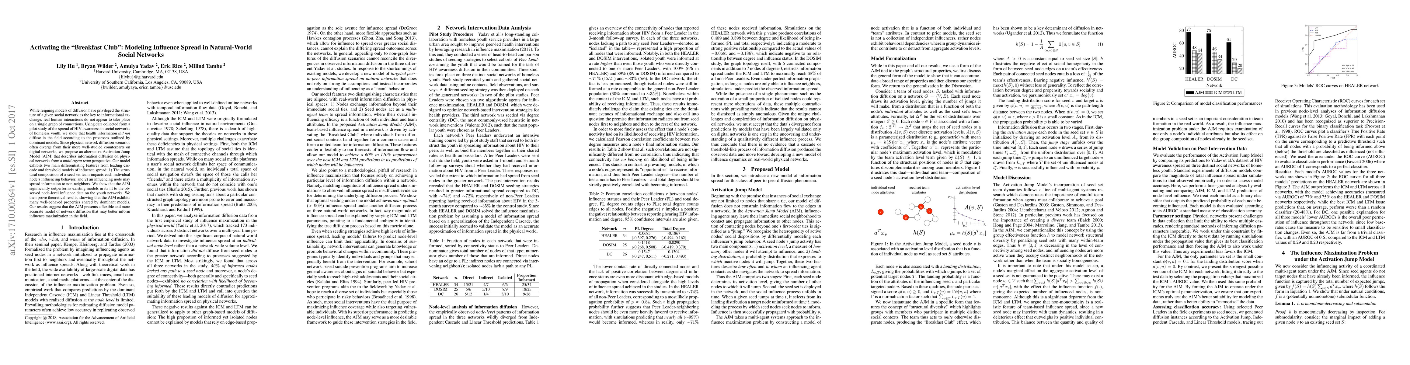 This paper proposes an alternative Activation Jump Model (AJM) to better describe the spread of information in physical social networks, using data from a pilot study on HIV awareness among homeless youth. The AJM outperforms traditional models by accounting for the structural composition of seed set teams and the potential for nodes to influence non-neighbors.