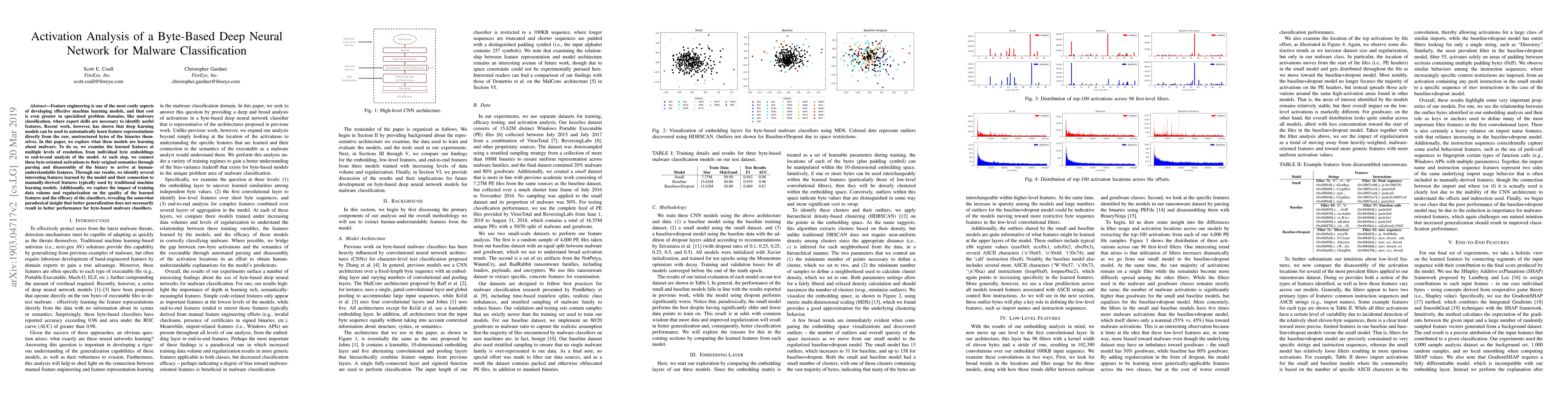 Feature engineering is one of the most costly aspects of developing effective machine learning models, and that cost is even greater in specialized problem domains, like malware classification, where expert skills are necessary to identify useful features. Recent work, however, has shown that deep learning models can be used to automatically learn feature representations directly from the raw, unstructured bytes of the binaries themselves. In this paper, we explore what these models are learning about malware. To do so, we examine the learned features at multiple levels of resolution, from individual byte embeddings to end-to-end analysis of the model. At each step, we connect these byte-oriented activations to their original semantics through parsing and disassembly of the binary to arrive at human-understandable features. Through our results, we identify several interesting features learned by the model and their connection to manually-derived features typically used by traditional machine learning models. Additionally, we explore the impact of training data volume and regularization on the quality of the learned features and the efficacy of the classifiers, revealing the somewhat paradoxical insight that better generalization does not necessarily result in better performance for byte-based malware classifiers.