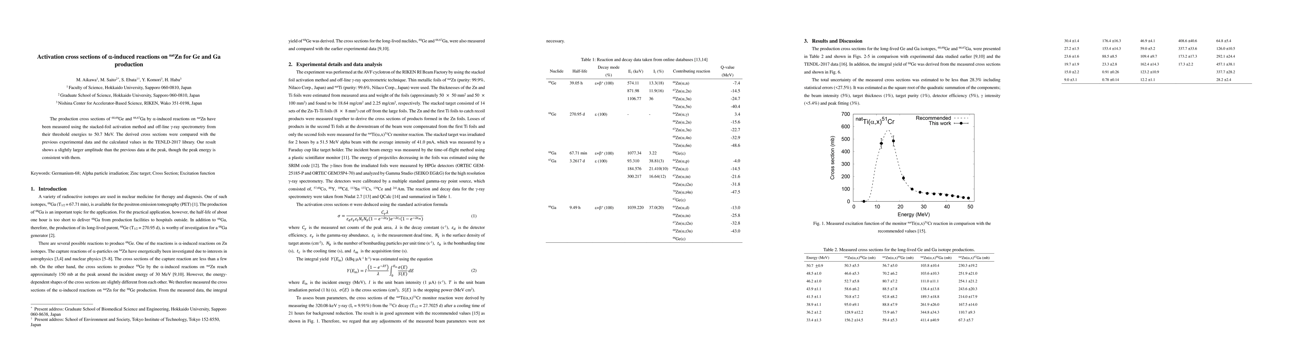 This study measures the activation cross sections for producing $^{68,69}$Ge and $^{66,67}$Ga via alpha-induced reactions on natural zinc, finding slightly higher peak amplitudes compared to previous data, while maintaining consistent peak energies.