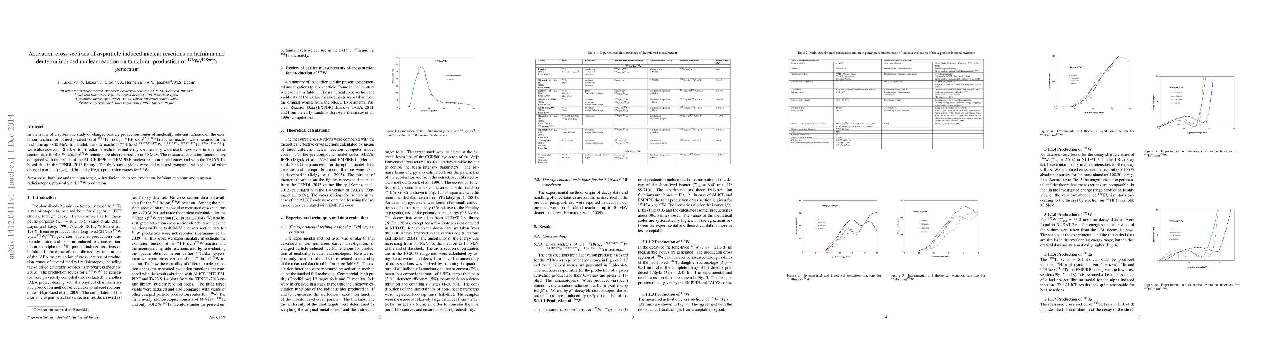 In the frame of a systematic study of charged particle production routes of medically relevant radionuclei, the excitation function for indirect production of $^{178m}$Ta through $^{nat}$Hf($\alpha$,xn)$^{178}$W-$^{178m}$Ta nuclear reaction was measured for the first time up to 40 MeV. In parallel, the side reactions $^{nat}$Hf($\alpha$,x)$^{179,177,176,175}$W, $^{183,182,178g,177,176,175}$Ta, $^{179m,177m,175}$Hf were also assessed. Stacked foil irradiation technique and $\gamma$-ray spectrometry were used. New experimental cross section data for the $^{nat}$Ta(d,xn)$^{178}$W reaction are also reported up to 40 MeV. The measured excitation functions are compared with the results of the ALICE-IPPE, and EMPIRE nuclear reaction model codes and with the TALYS 1.4 based data in the TENDL-2013 library. The thick target yields were deduced and compared with yields of other charged particle ((p,4n), (d,5n) and ($^3$He,x)) production routes for $^{178}$W.