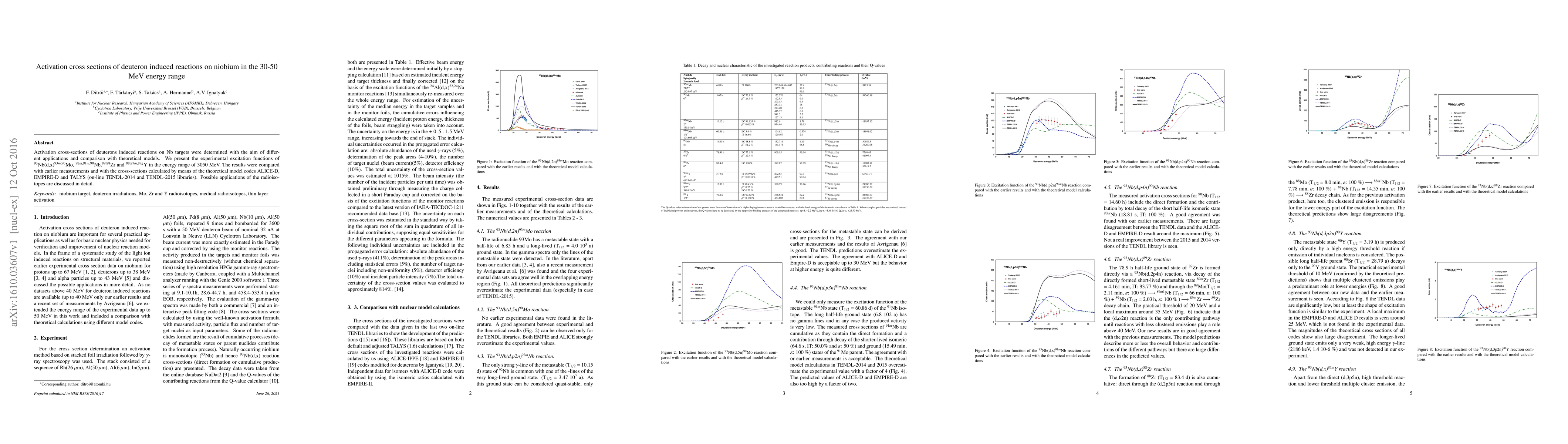 Researchers measured how likely deuterons are to induce reactions on niobium targets at 30-50 MeV energy levels, with applications in comparison to theoretical models.
