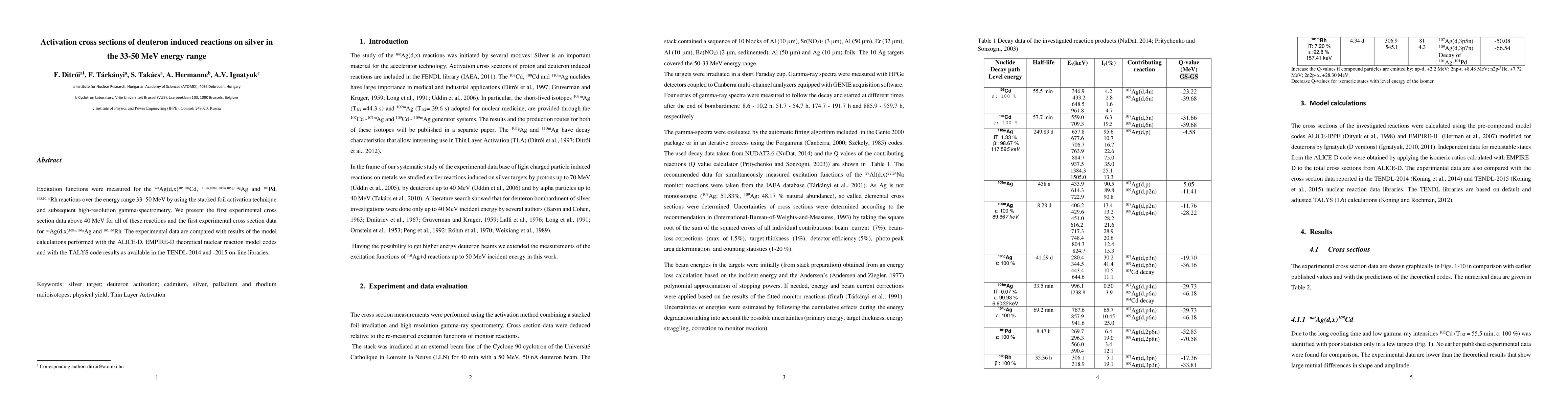 This study presents the first experimental data on deuteron-induced reactions with silver nuclei above 40 MeV, including production of Cadmium, multiple isotopes of Silver and Rhodium. The results are compared with theoretical models, providing insights into nuclear reaction mechanisms in this energy range.