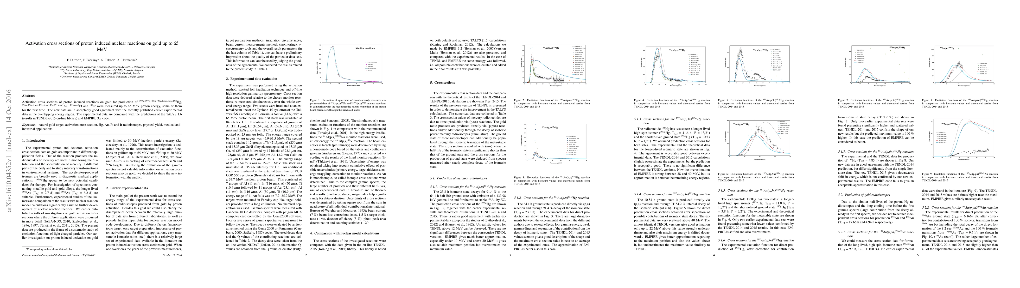 This paper reports on the activation cross sections of proton-induced nuclear reactions on gold up to 65 MeV, measuring several mercury and gold isotopes for the first time. The new data show good agreement with previous experimental results and are compared with predictions from TALYS and EMPIRE codes.