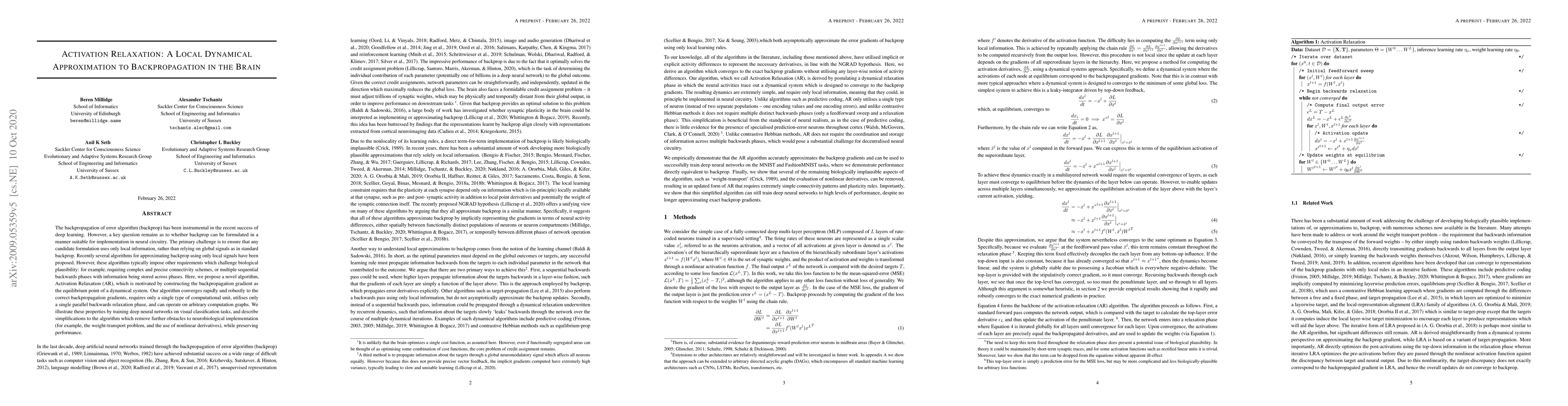 A new algorithm called Activation Relaxation (AR) approximates backpropagation using local signals in a way that is biologically plausible and computationally efficient, allowing for faster and more robust training of neural networks.