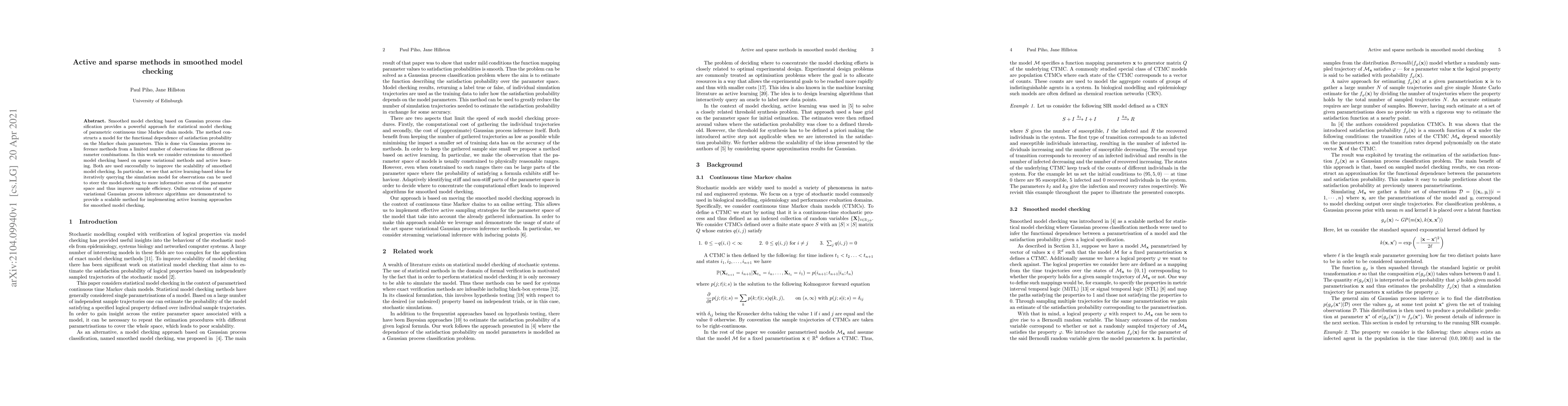 This paper explores enhanced smoothed model checking for continuous time Markov chains using sparse variational methods and active learning. It demonstrates how active learning can improve sample efficiency by focusing on more informative parameter regions, while online sparse variational Gaussian processes offer a scalable method for implementing these active learning strategies.