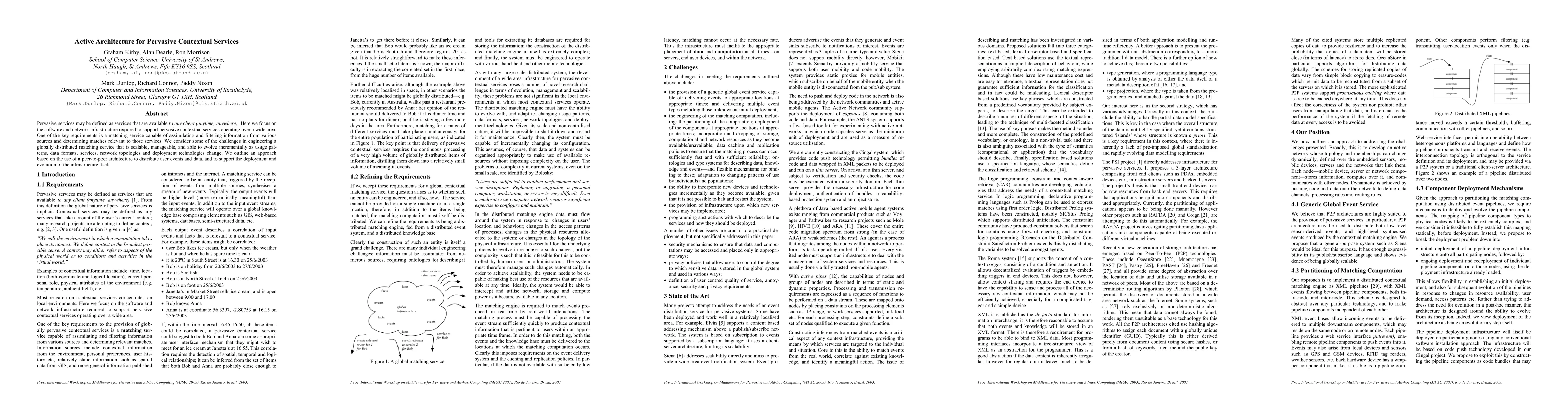 Researchers propose an active architecture for pervasive contextual services, using a peer-to-peer approach to distribute user events and data, enabling scalability, manageability, and incremental evolution.