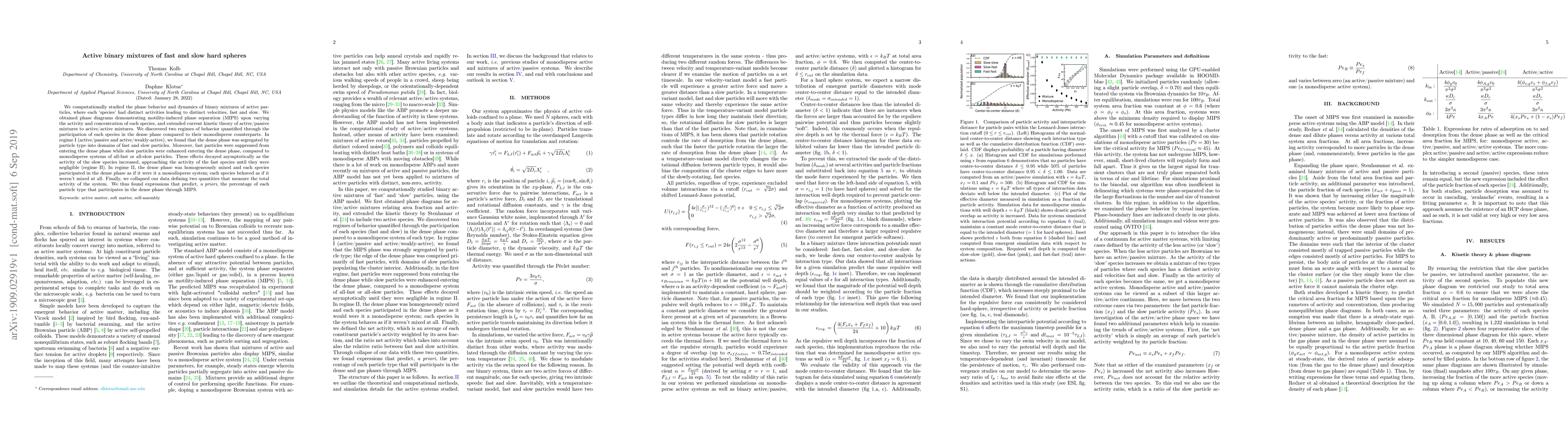 Researchers studied active binary mixtures of fast and slow hard spheres, finding two regimes of behavior where motility-induced phase separation occurs, with regime II showing homogeneous mixing of particle types in the dense phase.