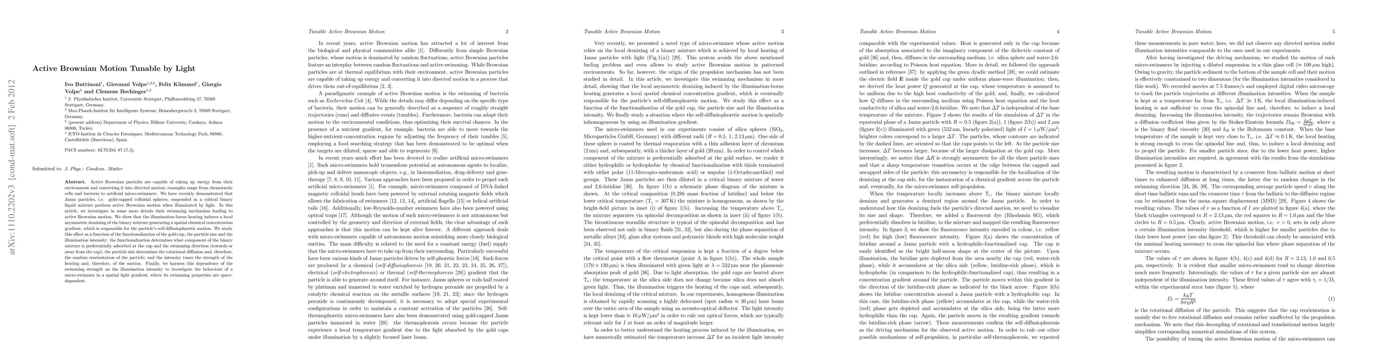 This paper explores how Janus particles, with gold-capped colloidal spheres, exhibit active Brownian motion driven by light-induced heating, which creates a chemical concentration gradient. The study investigates the influence of gold cap functionalization, particle size, and illumination intensity on the swimming mechanism and behavior in spatial light gradients.