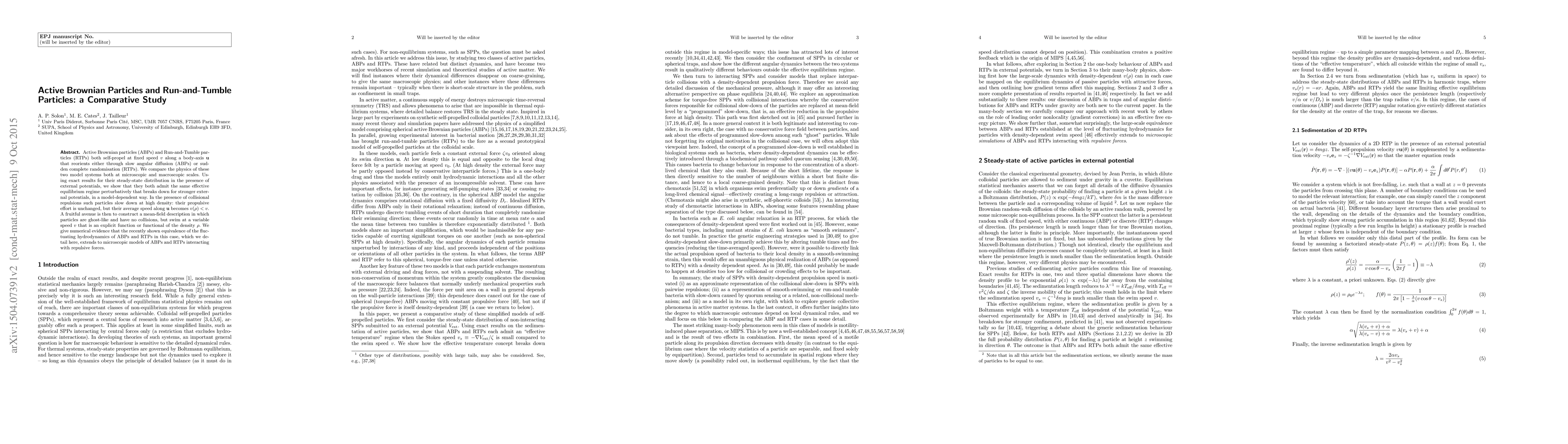 The research establishes a novel connection between ABPs and RTPs, highlighting their equivalence in certain regimes and providing a deeper understanding of their collective behavior in external potentials.