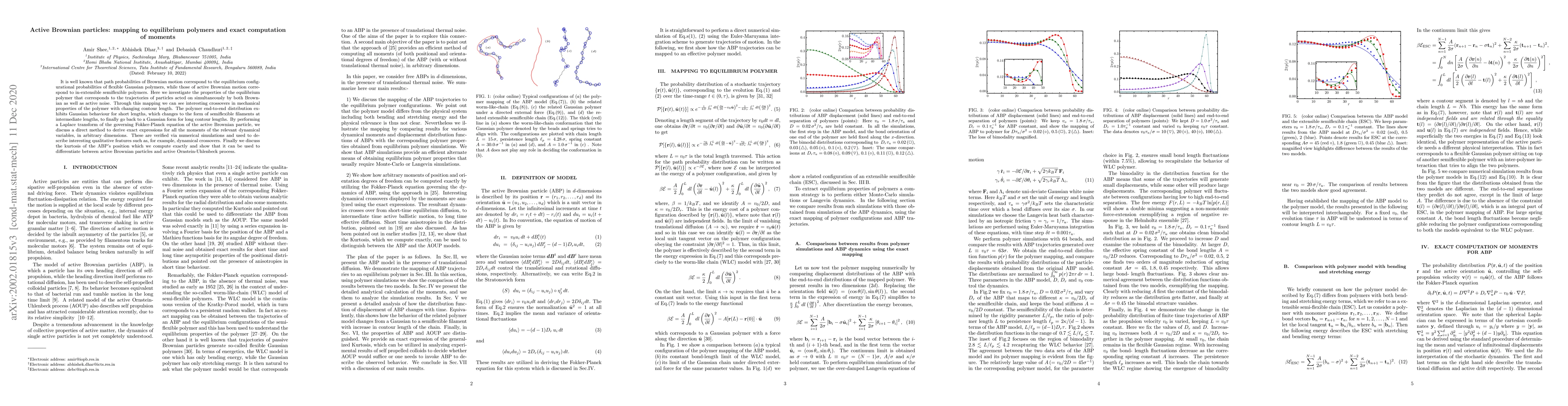 It is well known that path probabilities of Brownian motion correspond to the equilibrium configurational probabilities of flexible Gaussian polymers, while those of active Brownian motion correspond to in-extensible semiflexible polymers. Here we investigate the properties of the equilibrium polymer that corresponds to the trajectories of particles acted on simultaneously by both Brownian as well as active noise. Through this mapping we can see interesting crossovers in mechanical properties of the polymer with changing contour length. The polymer end-to-end distribution exhibits Gaussian behaviour for short lengths, which changes to the form of semiflexible filaments at intermediate lengths, to finally go back to a Gaussian form for long contour lengths. By performing a Laplace transform of the governing Fokker-Planck equation of the active Brownian particle, we discuss a direct method to derive exact expressions for all the moments of the relevant dynamical variables, in arbitrary dimensions. These are verified via numerical simulations and used to describe interesting qualitative features such as, for example, dynamical crossovers. Finally we discuss the kurtosis of the ABP's position which we compute exactly and show that it can be used to differentiate between active Brownian particles and active Ornstein-Uhlenbeck process.