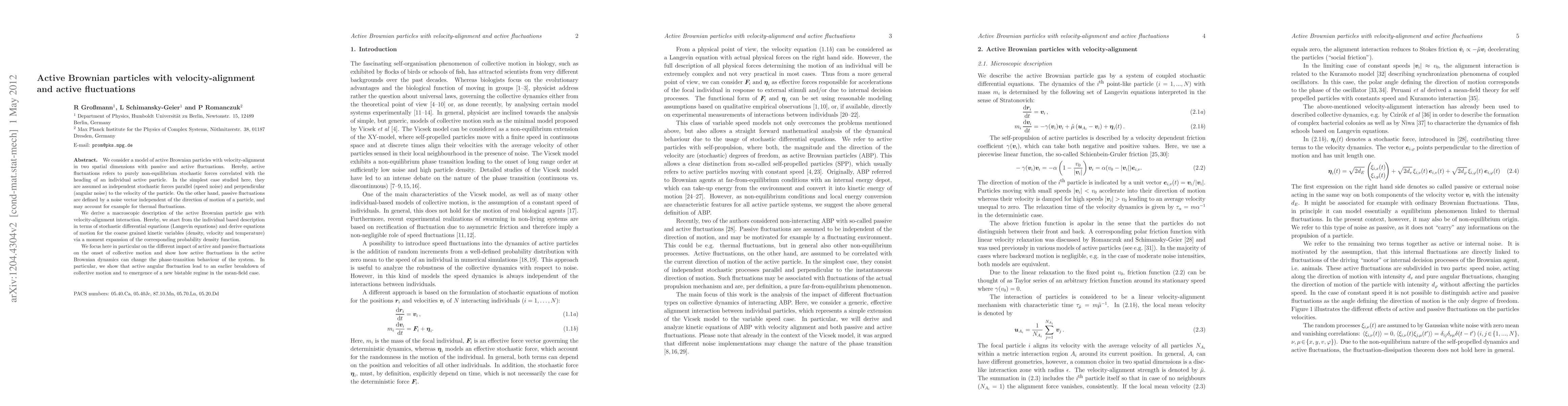 This paper models active Brownian particles with velocity-alignment and distinct active and passive fluctuations, deriving macroscopic equations from individual-based stochastic differential equations. It highlights the impact of active fluctuations on collective motion, showing an earlier breakdown of order and the emergence of a new bistable regime.