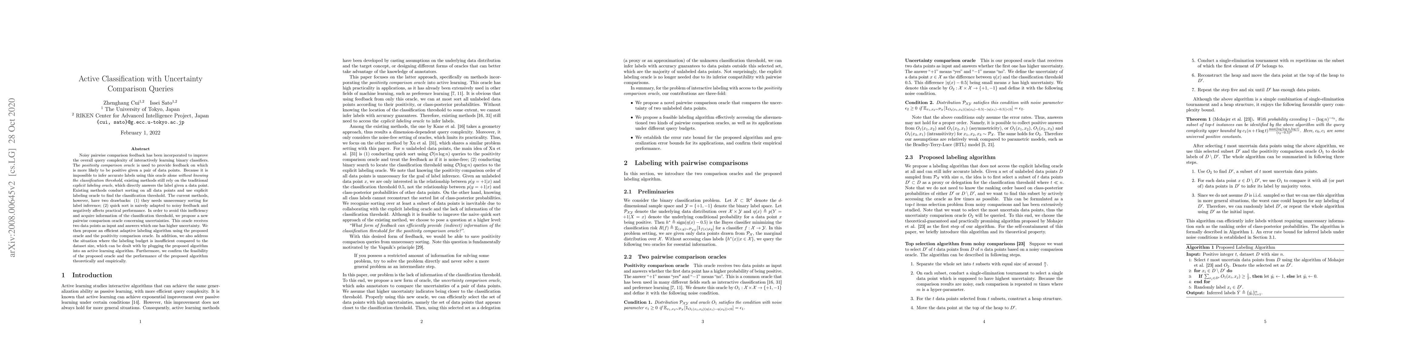 This paper proposes a new pairwise comparison oracle that assesses uncertainty between data points to improve the efficiency of learning binary classifiers. It introduces an adaptive labeling algorithm that leverages both uncertainty and positivity comparison oracles, avoiding unnecessary sorting and enhancing performance over traditional methods.