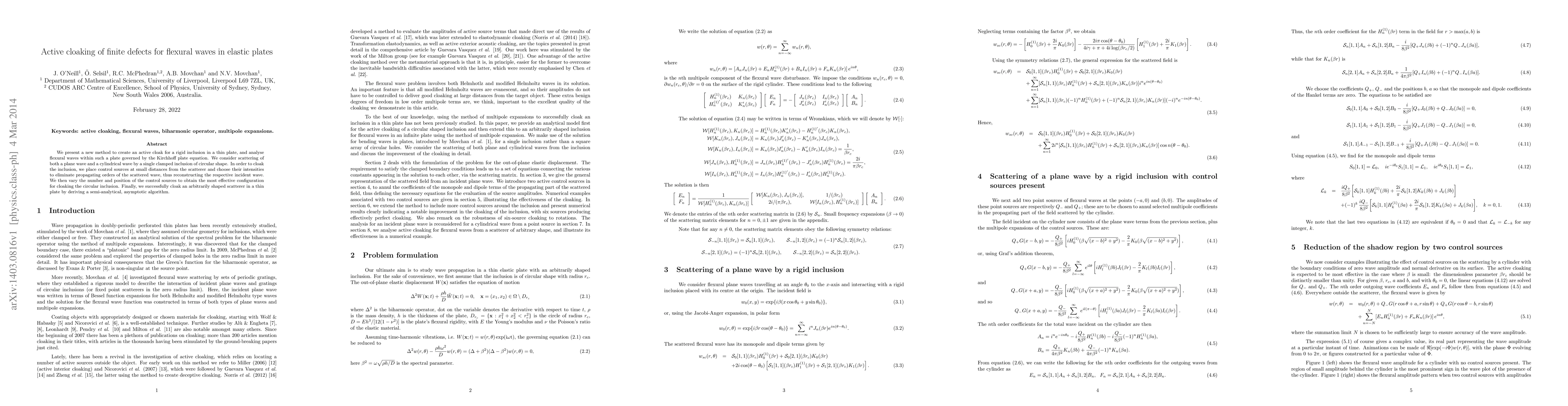 Researchers developed an active cloaking method to hide defects in thin plates by manipulating control sources to eliminate scattered waves, effectively reconstructing the incident wave.