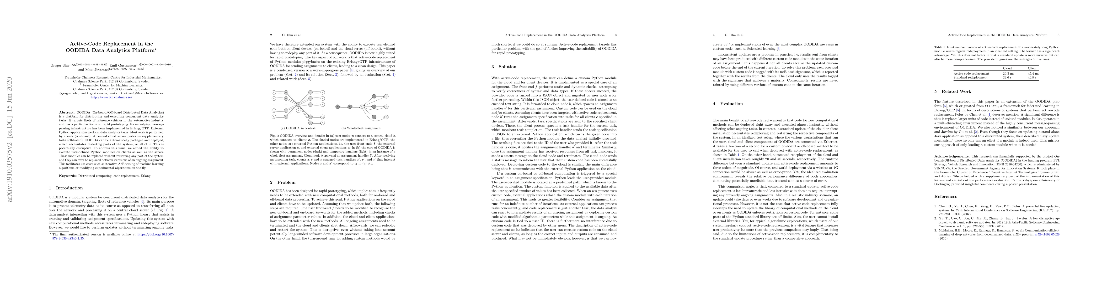 OODIDA (On-board/Off-board Distributed Data Analytics) is a platform for distributing and executing concurrent data analytics tasks. It targets fleets of reference vehicles in the automotive industry and has a particular focus on rapid prototyping. Its underlying message-passing infrastructure has been implemented in Erlang/OTP. External Python applications perform data analytics tasks. Most work is performed by clients (on-board). A central cloud server performs supplementary tasks (off-board). OODIDA can be automatically packaged and deployed, which necessitates restarting parts of the system, or all of it. This is potentially disruptive. To address this issue, we added the ability to execute user-defined Python modules on clients as well as the server. These modules can be replaced without restarting any part of the system and they can even be replaced between iterations of an ongoing assignment. This facilitates use cases such as iterative A/B testing of machine learning algorithms or modifying experimental algorithms on-the-fly.