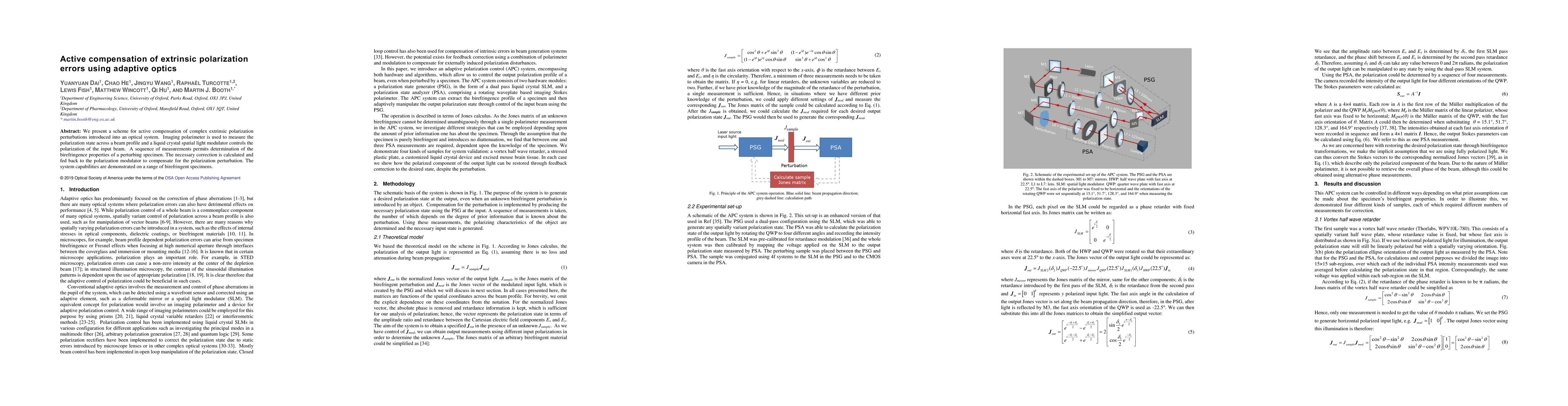 This paper proposes an adaptive optics system that uses an imaging polarimeter and a liquid crystal spatial light modulator to actively compensate for extrinsic polarization errors in optical systems. The system measures the polarization state and corrects it in real-time to mitigate birefringence effects.