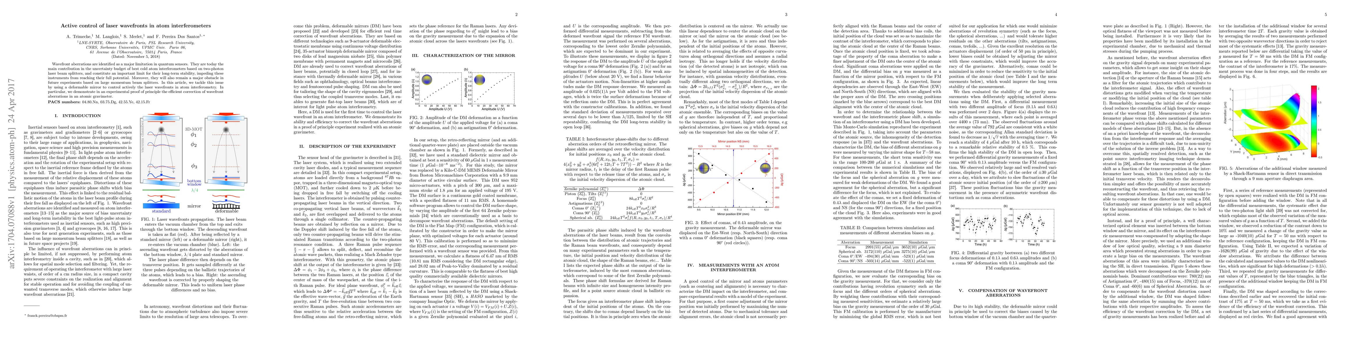 This paper addresses wavefront aberrations in quantum sensors, particularly in cold atom interferometers, which limit their long-term stability. The authors propose an active control method using a deformable mirror to correct these aberrations, successfully demonstrating the technique in an atomic gravimeter.
