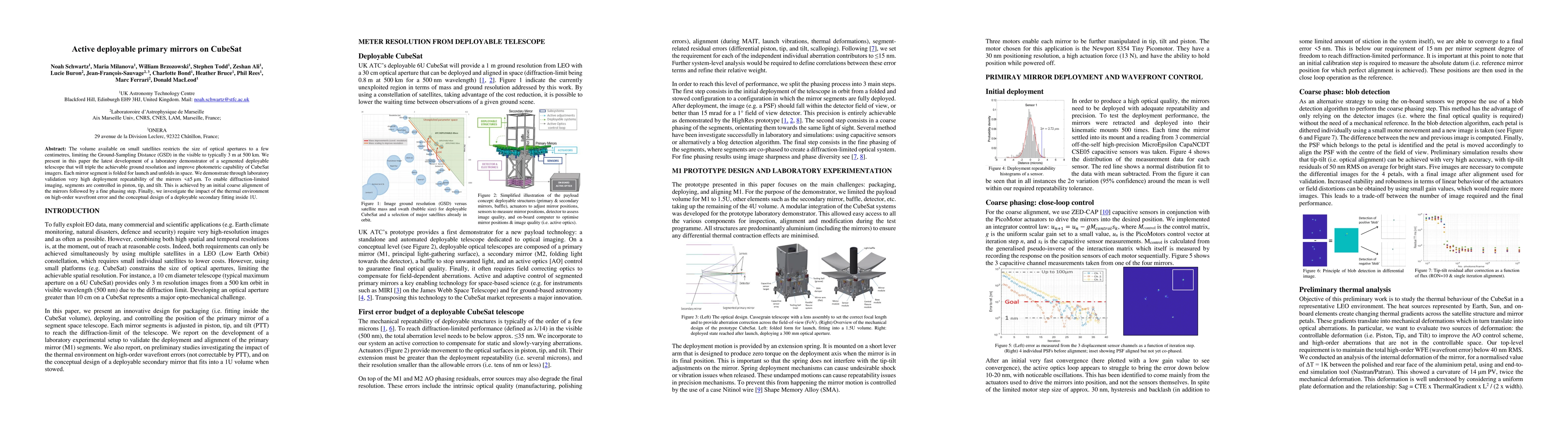 The paper presents a novel approach to deploying and controlling active optics on CubeSats, including a segmented primary mirror, capacitive sensors, and linear piezo actuators for precise positioning.
