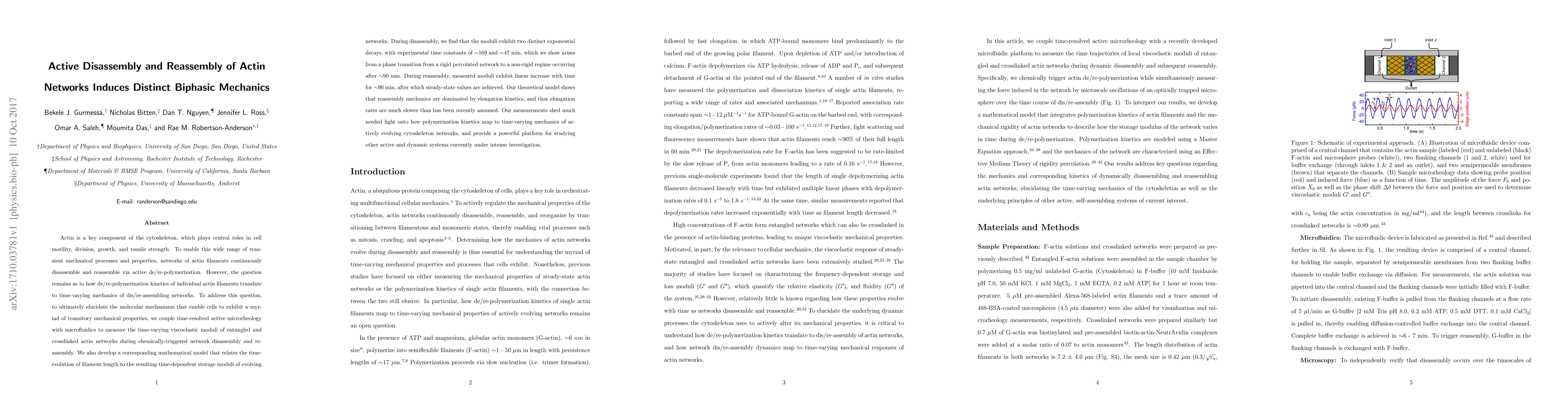 This research investigates how active disassembly and reassembly of actin networks translate to distinct biphasic mechanics using time-resolved active microrheology and microfluidics. The study reveals two exponential decay phases during disassembly and a linear increase during reassembly, providing insights into the kinetics and mechanics of evolving cytoskeleton networks.