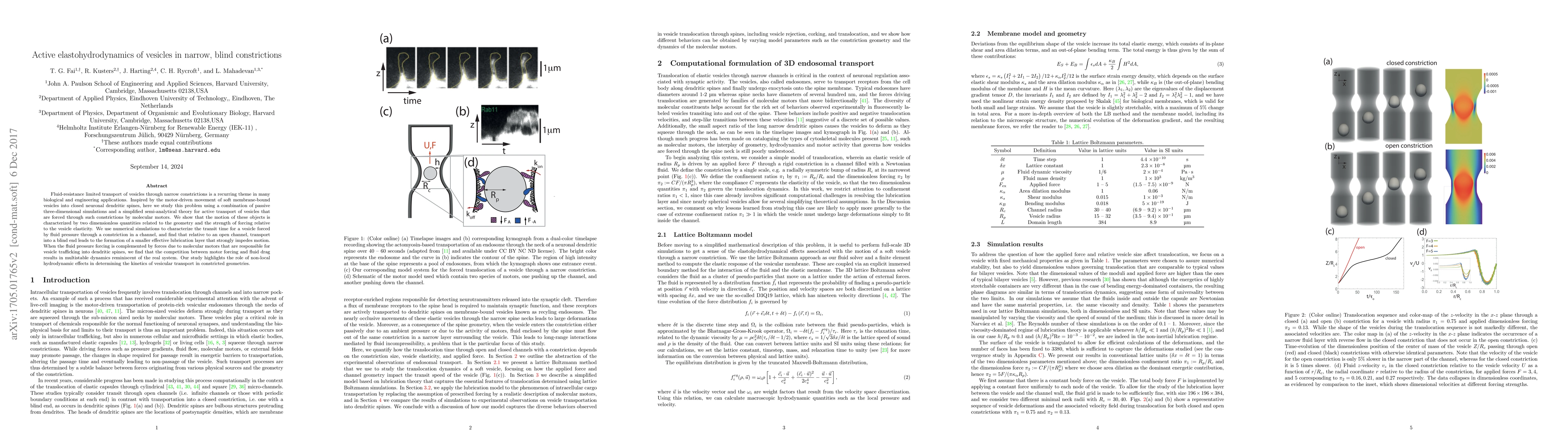 Researchers studied how vesicles move through narrow constrictions, finding that fluid resistance creates an effective lubrication layer that impedes motion, but adding molecular motor forces can lead to multistable dynamics.