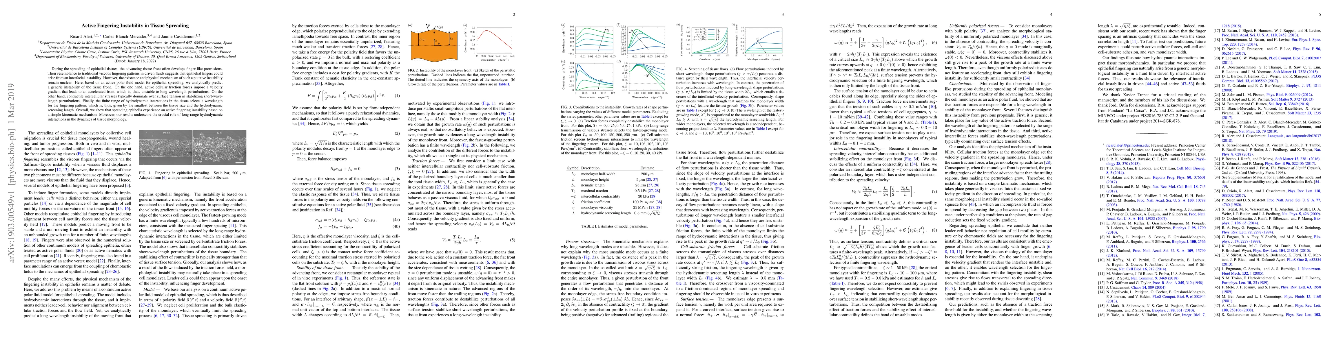 The paper presents an analytical prediction of an active fingering instability in epithelial spreading using an active polar fluid model, highlighting the role of active traction forces and hydrodynamic interactions.