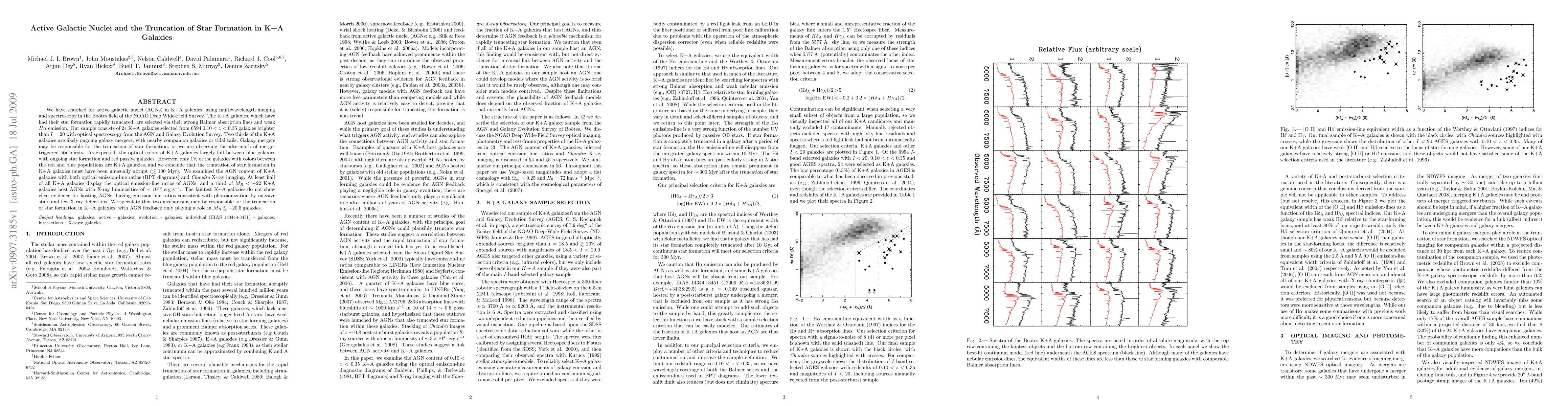 This study investigates the presence of active galactic nuclei (AGNs) in K+A galaxies, which exhibit rapidly truncated star formation, using multiwavelength data. It finds that half of these galaxies show AGN characteristics, suggesting AGN feedback may play a role in the truncation of star formation, particularly in more luminous galaxies.
