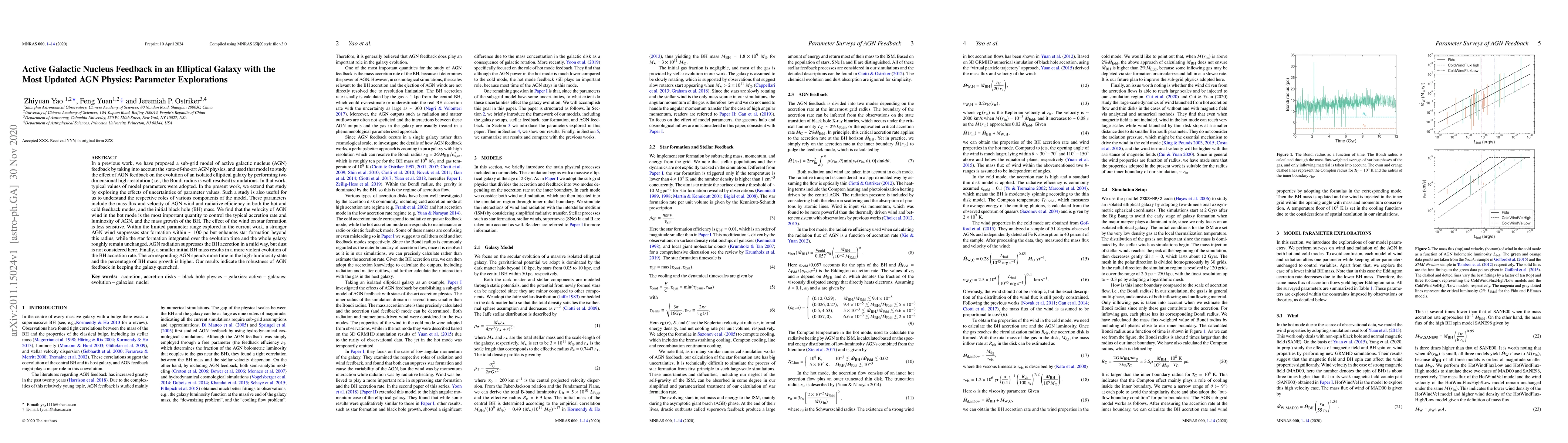 This paper explores the impact of various AGN feedback parameters on the evolution of an elliptical galaxy using high-resolution simulations. It finds that the AGN wind velocity is crucial for controlling AGN luminosity and black hole mass growth, while having a nuanced effect on star formation.