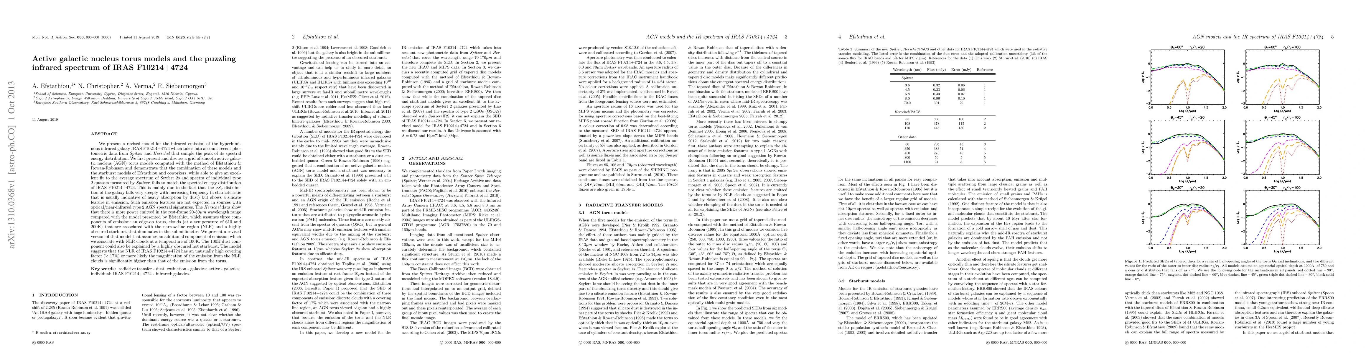We present a revised model for the infrared emission of the hyperluminous infrared galaxy IRAS F10214+4724 which takes into account recent photometric data from Spitzer and Herschel that sample the peak of its spectral energy distribution. We first present and discuss a grid of smooth active galactic nucleus (AGN) torus models computed with the method of Efstathiou & Rowan-Robinson and demonstrate that the combination of these models and the starburst models of Efstathiou and coworkers, while able to give an excellent fit to the average spectrum of Seyfert 2s and spectra of individual type 2 quasars measured by Spitzer, fails to match the spectral energy distribution of IRAS F10214+4724. This is mainly due to the fact that the nuSnu distribution of the galaxy falls very steeply with increasing frequency (a characteristic that is usually indicative of heavy absorption by dust) but shows a silicate feature in emission. Such emission features are not expected in sources with optical/near-infrared type 2 AGN spectral signatures. The Herschel data show that there is more power emitted in the rest-frame 20-50um wavelength range compared with the model presented by Efstathiou which assumes three components of emission: an edge-on torus, clouds (at a temperature of 610 and 200K) that are associated with the narrow-line region (NLR) and a highly obscured starburst that dominates in the submillimetre. We present a revised version of that model that assumes an additional component of emission which we associate with NLR clouds at a temperature of 100K. The 100K dust component could also be explained by a highly obscured hot starburst. The model suggests that the NLR of IRAS F10214+4724 has an unusually high covering factor (>= 17%) or more likely the magnification of the emission from the NLR clouds is significantly higher than that of the emission from the torus.