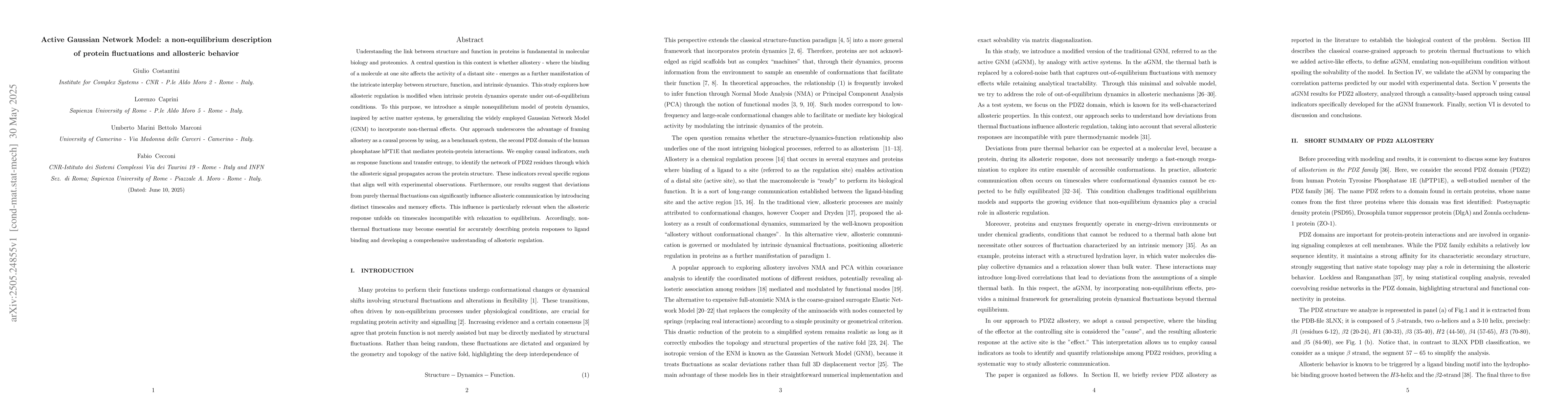 The Active Gaussian Network Model (aGNM) serves as a novel theoretical framework for describing non-equilibrium protein dynamics, extending the conventional Gaussian Network Model (GNM) to include non-thermal effects.