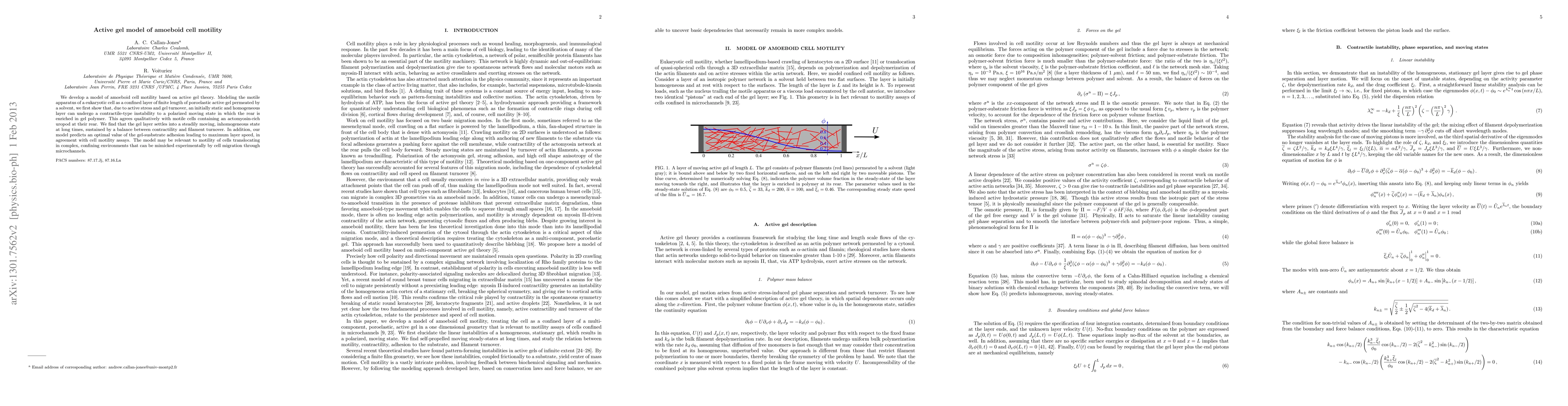 Researchers develop a model of amoeboid cell motility based on active gel theory, predicting an optimal adhesion value for maximum layer speed, and showing how cells can transition from stillness to movement through contractile-type instability.