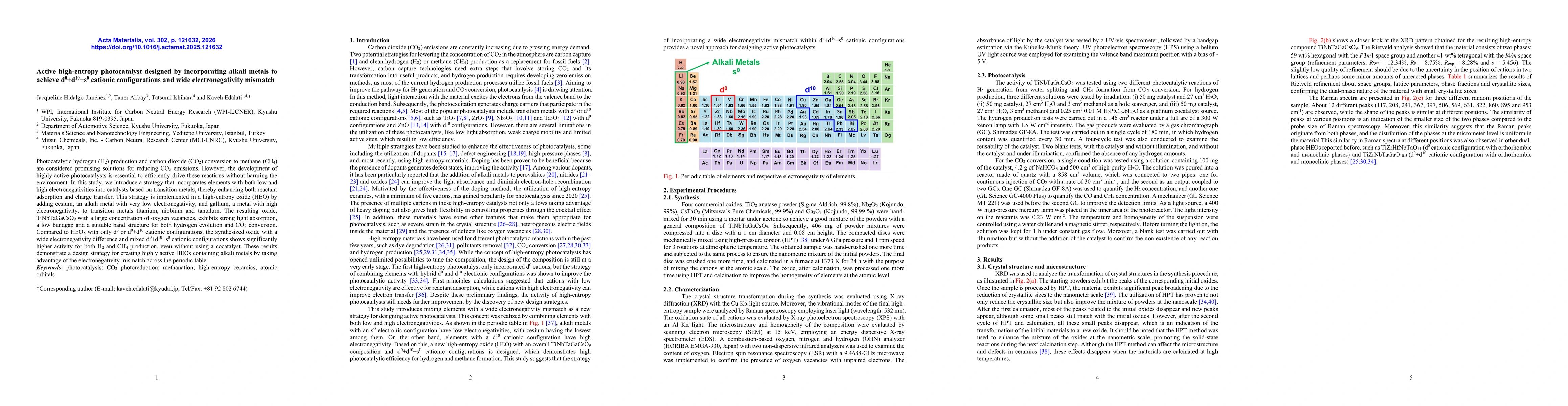 Development of a combined computational-experimental approach to systematically study and optimize the electronic configurations of high-entropy oxides for photocatalytic applications.