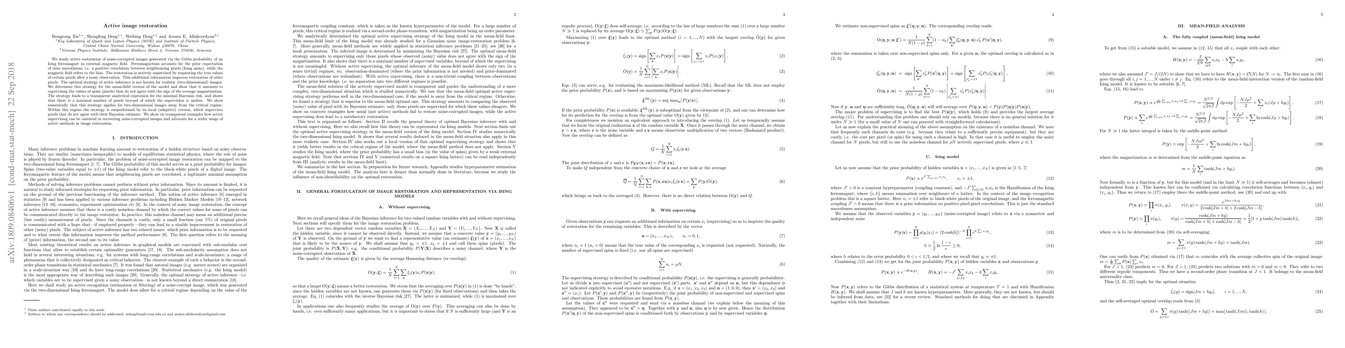 Researchers developed a method to actively restore noisy images using an Ising ferromagnet model, showing that supervising certain pixels can significantly improve restoration results.