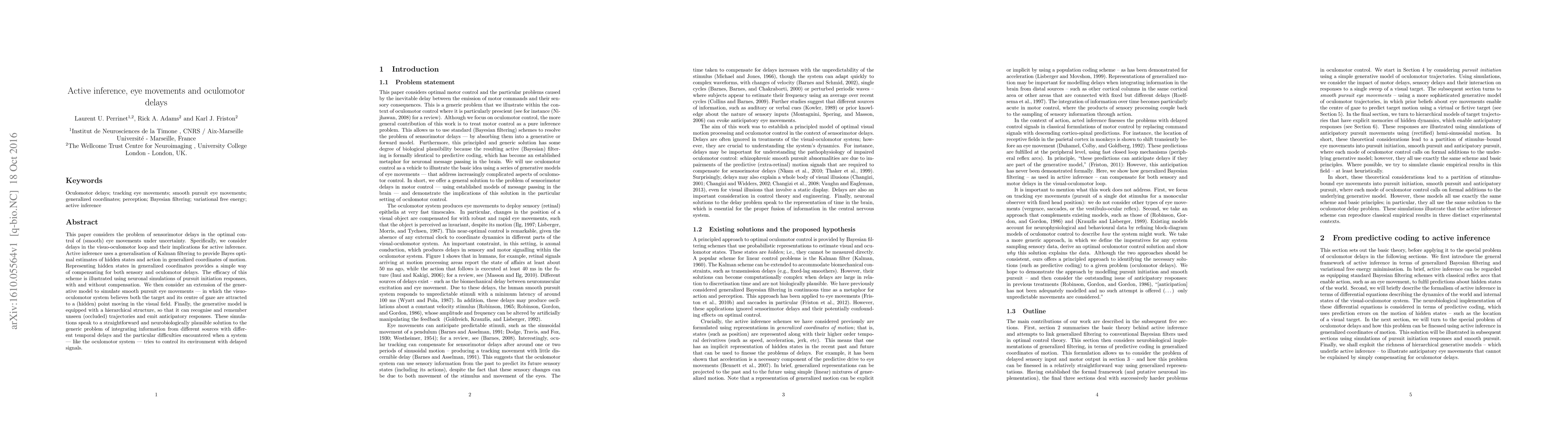 Researchers used active inference to model eye movements with delays in the visuo-oculomotor loop, finding a neurobiologically plausible solution for integrating information from different sources.